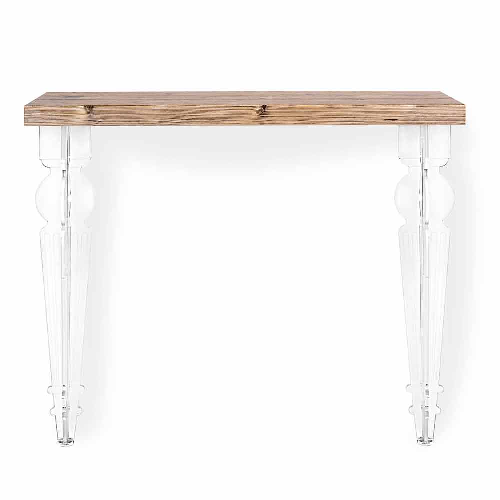 Nástěnná konzole v moderním designu v průhledném plexiskle a vrchní části v dřevěné esenci, vyrobená v Itálii.