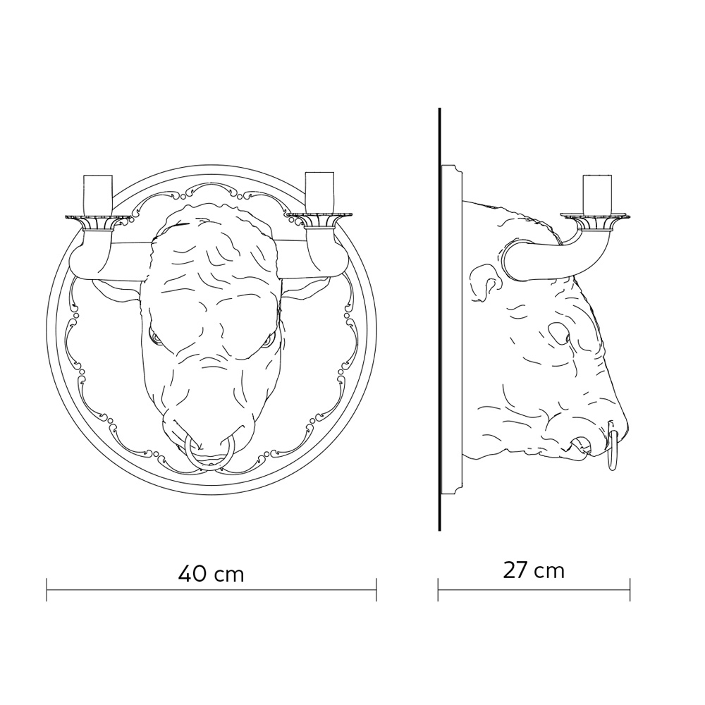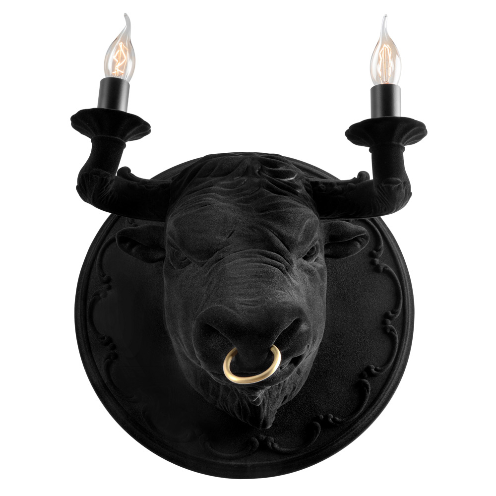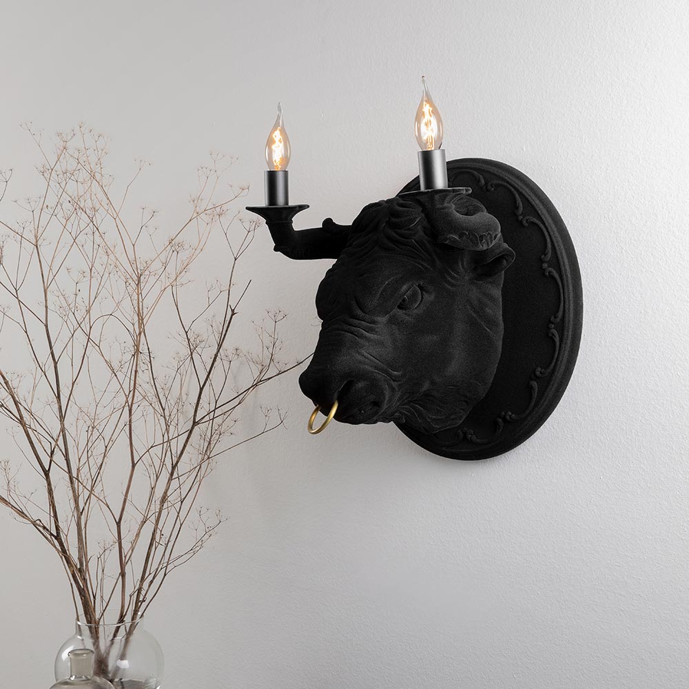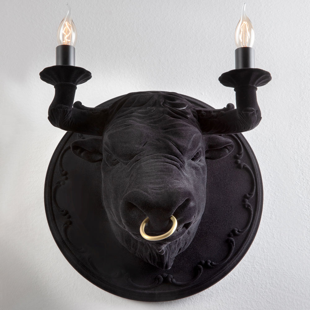 Toto originální a jedinečné nástěnné svítidlo má moderní a roztomilý design ve tvaru býčí hlavy doplněné o kroužek v nose a rohy pro světla pro lehkého a sofistikovaného ducha.