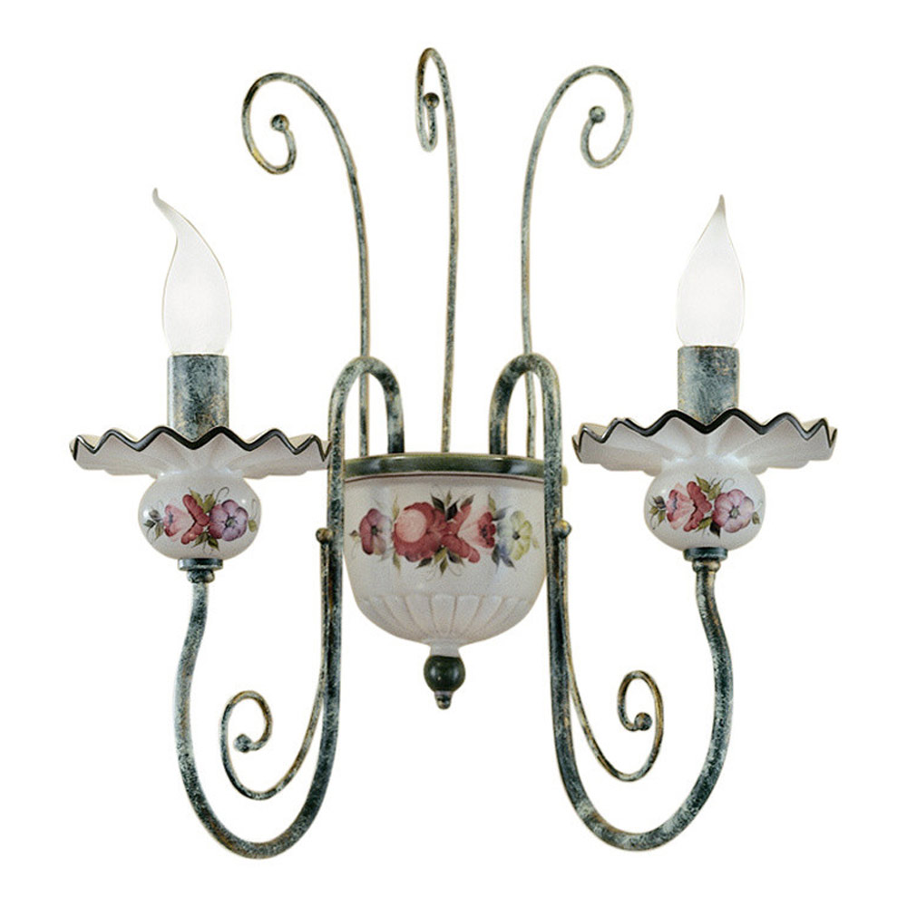 Tato 2-světelná nástěnná lampa je celá ručně vyrobená ze starožitné mosazi a keramiky s ručně malovaným květinovým dekorem, vyzdvihnout řemeslnou zručnost a manuální zručnost řemeslníků.