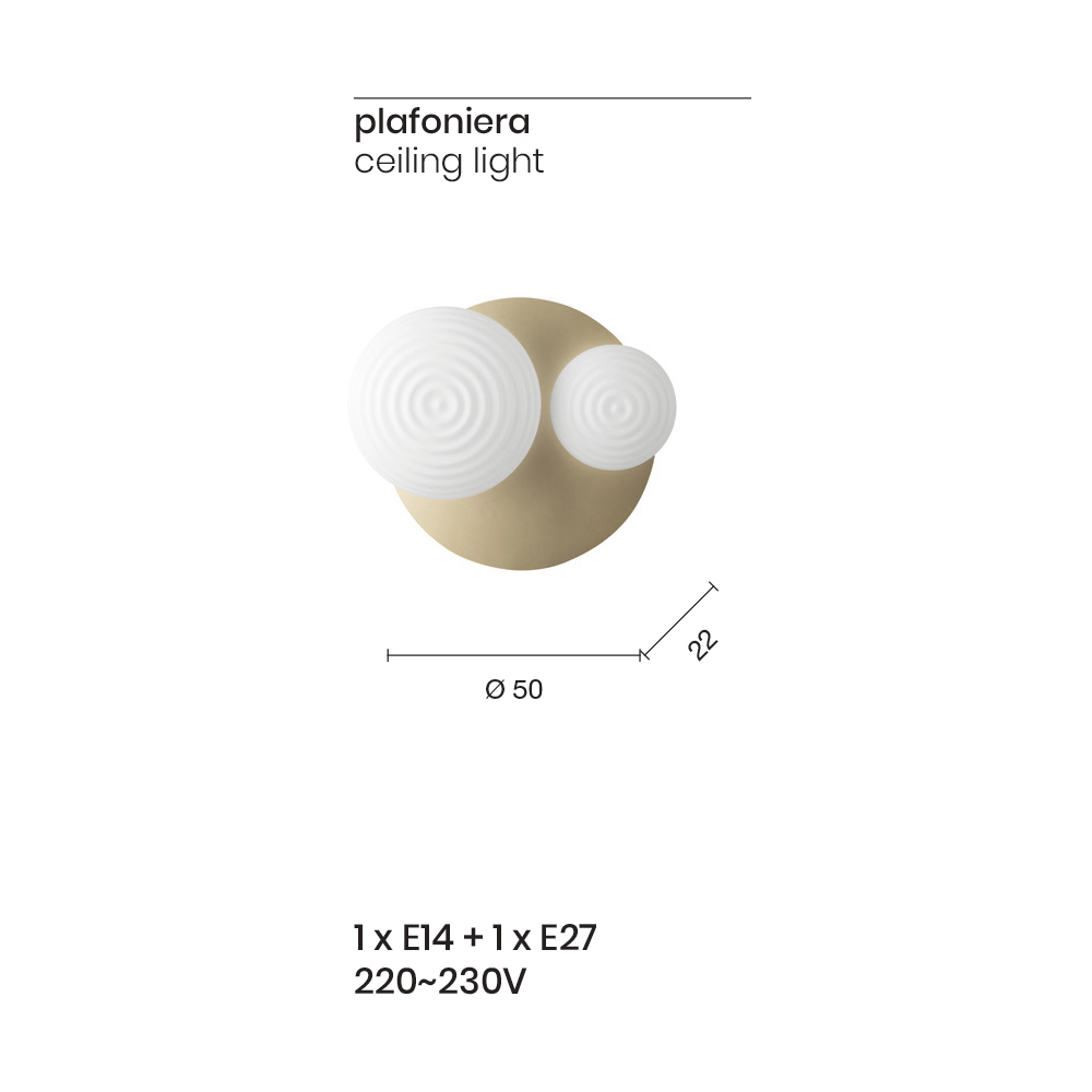 - průměr 50 x P 22 cm (1x E14 + 1x E27 220-230V);