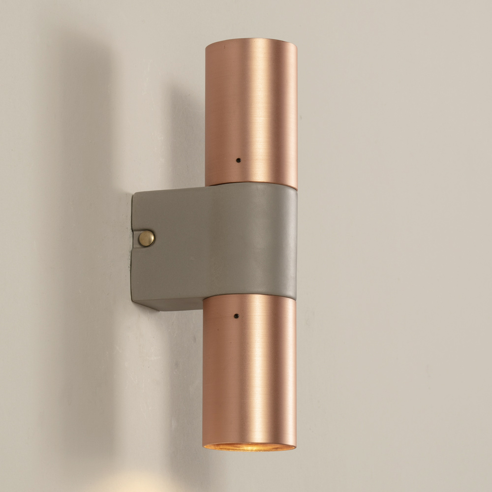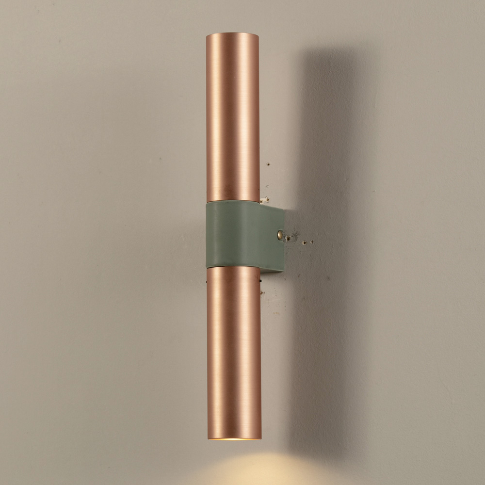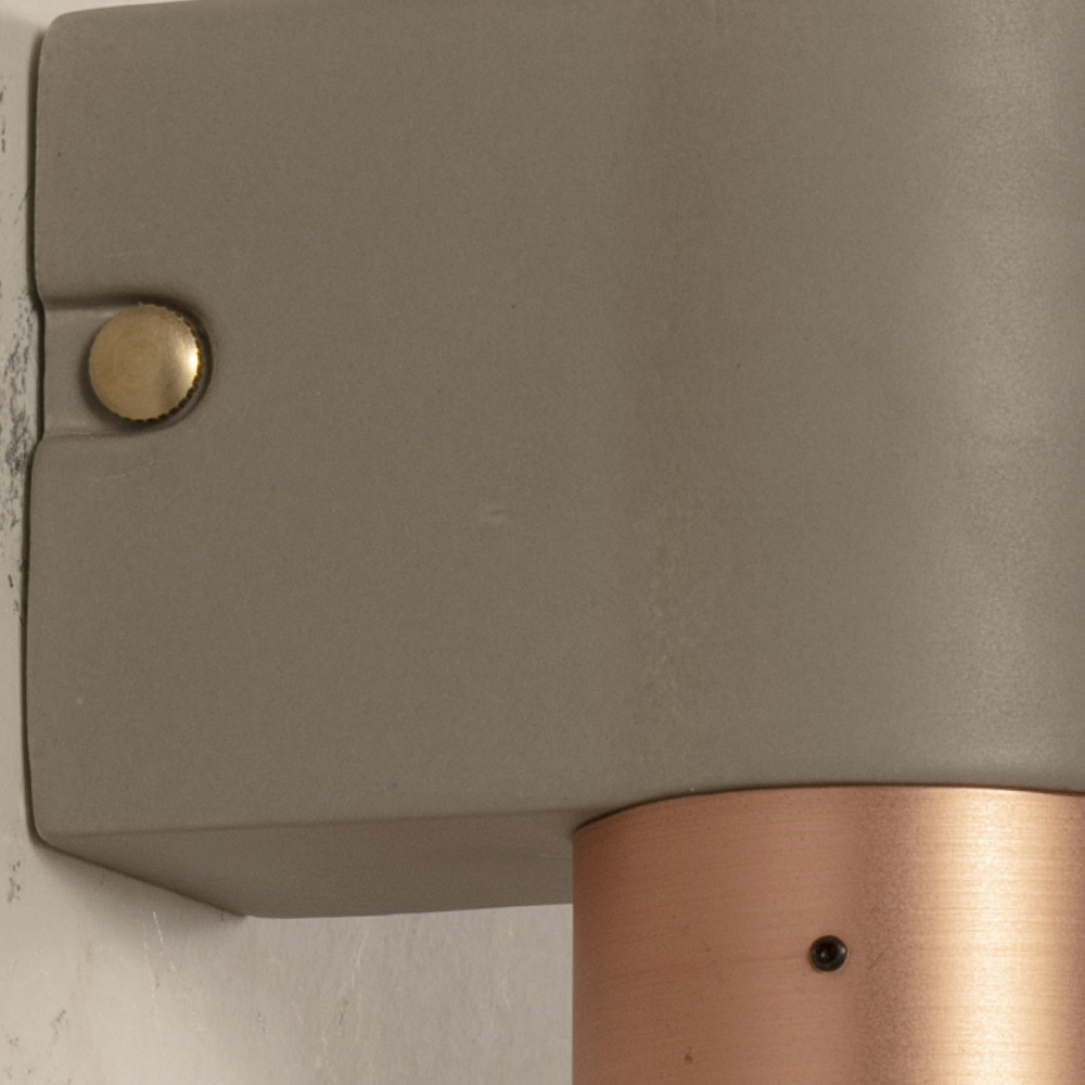 Ručně vyrobená nástěnná lampa z glazované keramiky a mědi Made in Italy.