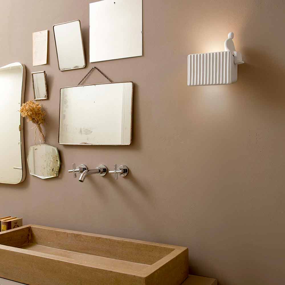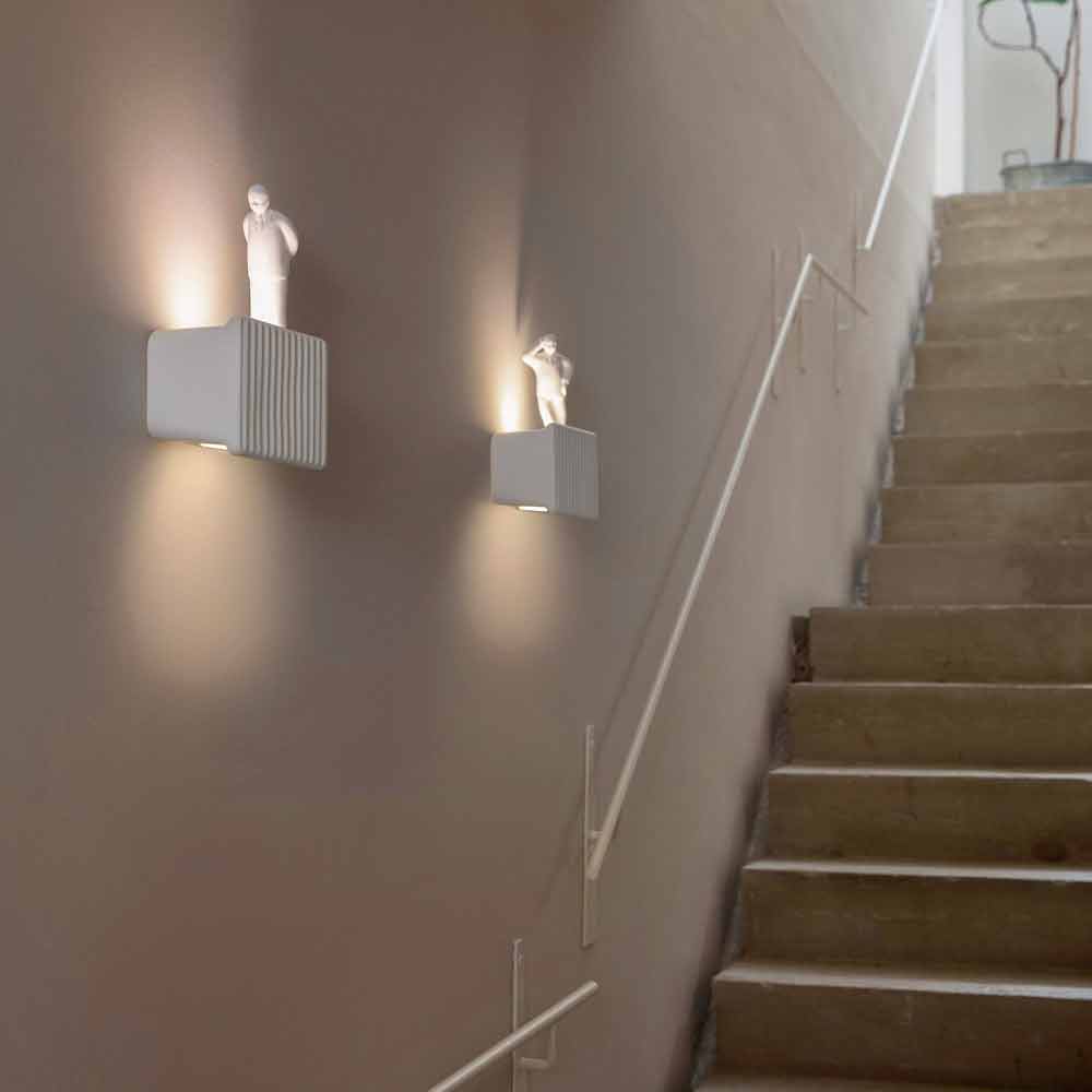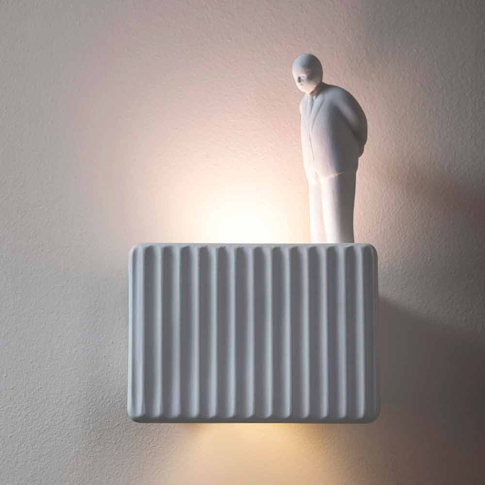 Tato originální a jedinečná nástěnná lampa představuje hnutí, které se v posledních letech těší úspěšnému mediálnímu fenoménu a v němž vidí protagonistu Umarella nebo typického staršího důchodce, který se dívá na staveniště nebo veřejné práce. Jedná se o koncept, který ironicky ožil v Itálii a poté se rozšířil do zbytku světa, aby stimuloval a zlepšil výrobu pro všechny kancelářské a počítačové pracovníky.
