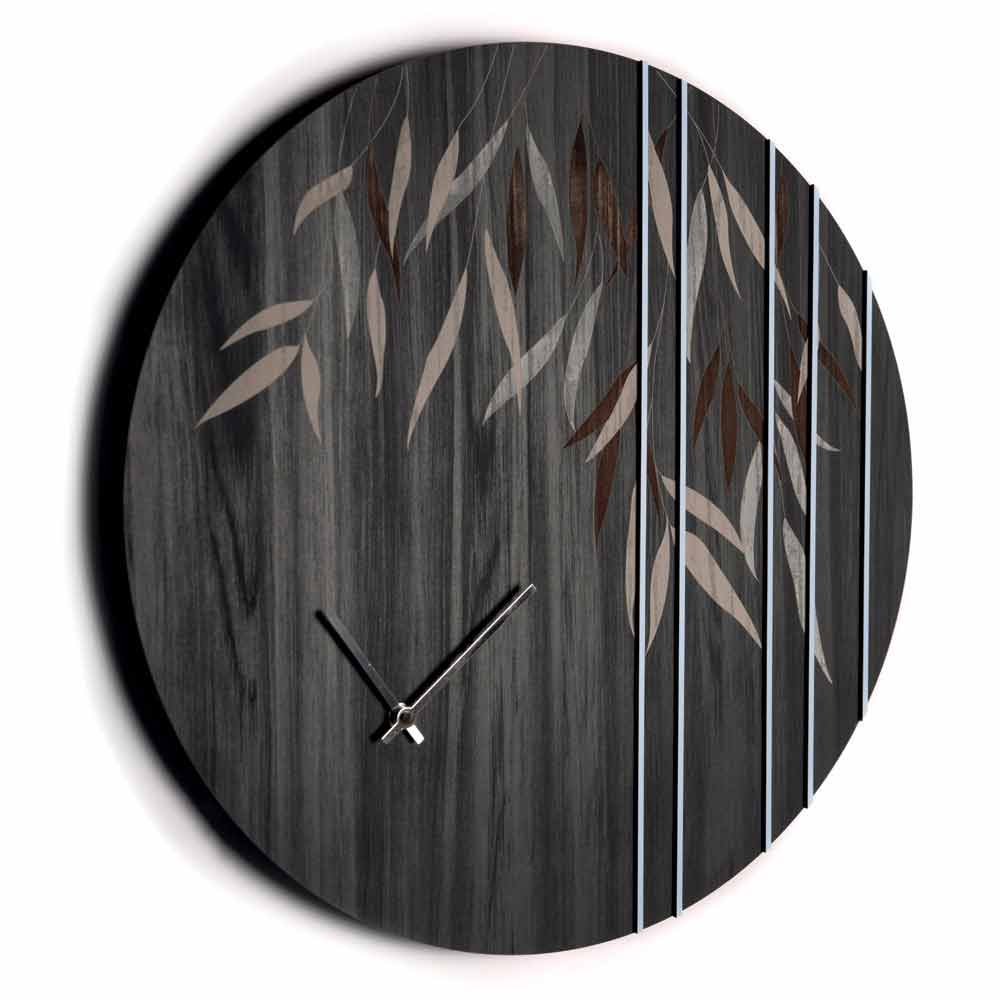 Kulaté dřevěné nástěnné hodiny s laserovým gravírováním a lakovanými dřevěnými dekoracemi, vyrobené v italském designu.