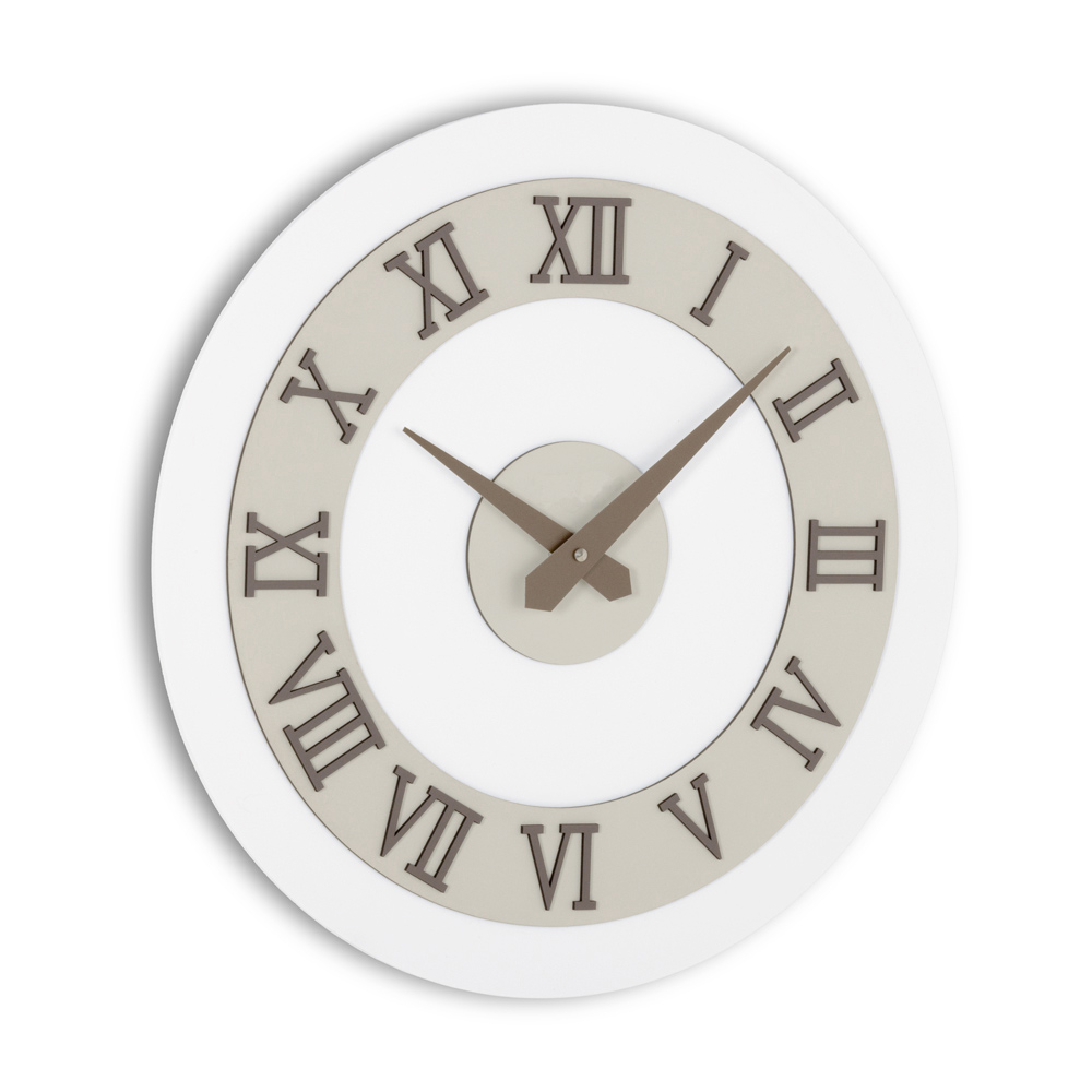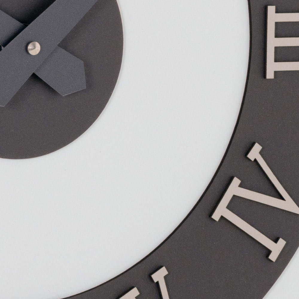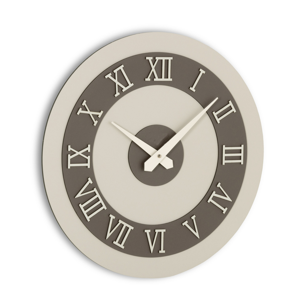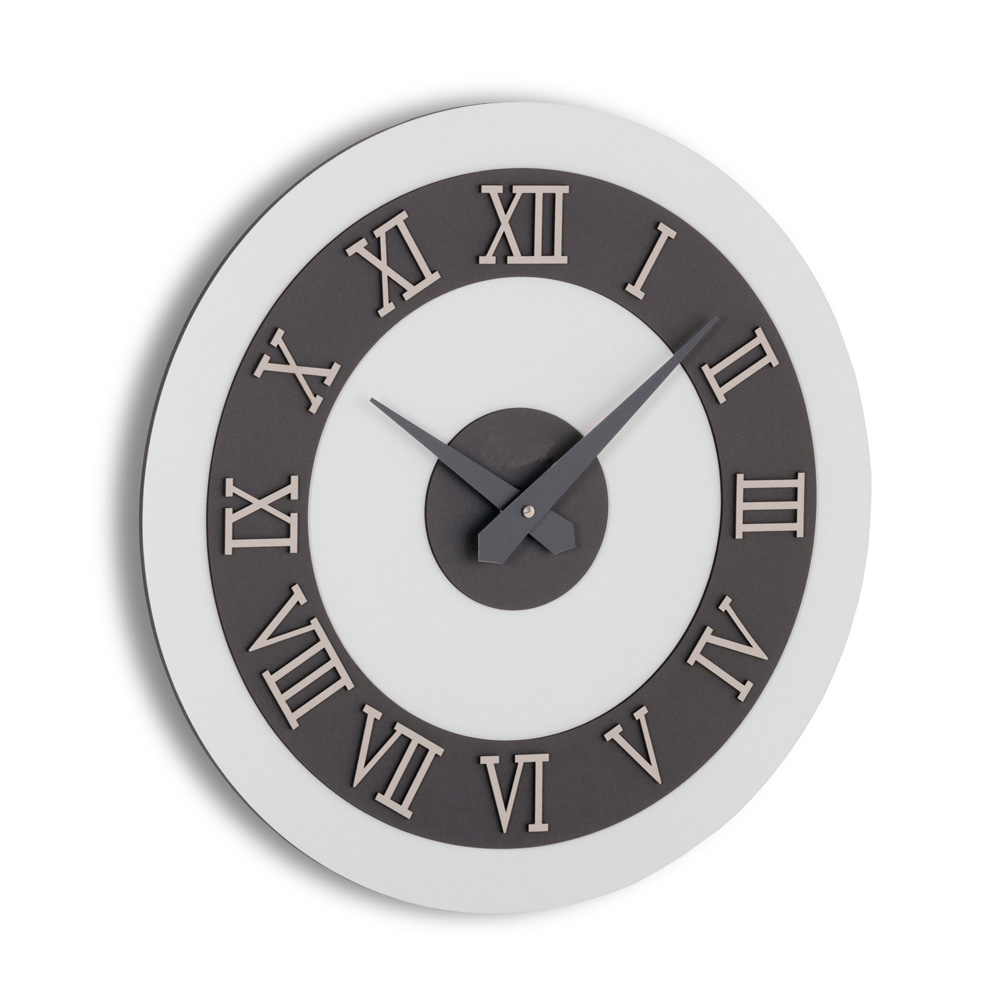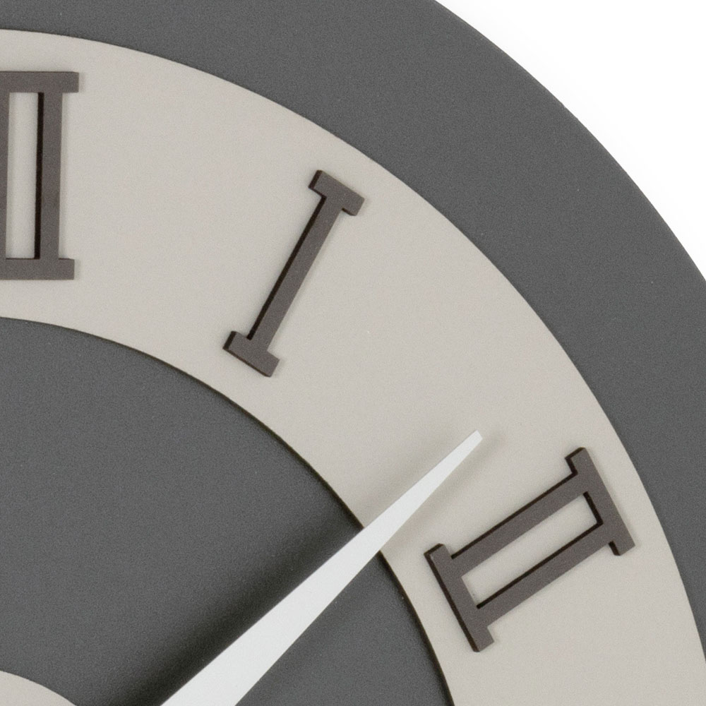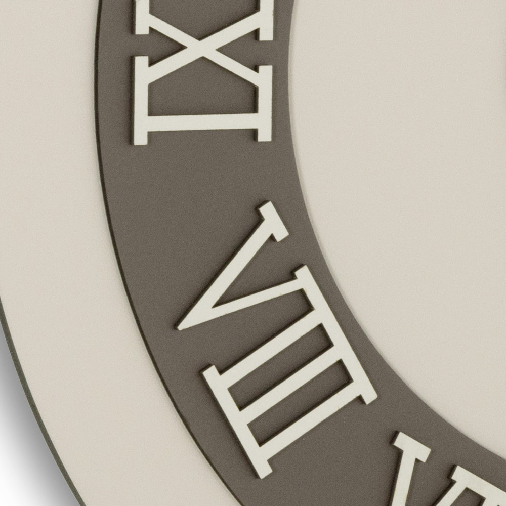 Na podložce z MDF laminované na polypropylenových fóliích se nachází vyhledávané textury, které vytvářejí jedinečné vizuální kontrasty a moderní tóny, ideální pro elegantní a charakterní prostředí. Skutečně výrazný dotek? Římské číslice v reliéfu z vrstveného lisovaného lnu, získaného z ekologicky udržitelných přírodních surovin: pevný povrch, příjemný na dotek a neuvěřitelně rafinovaný.
