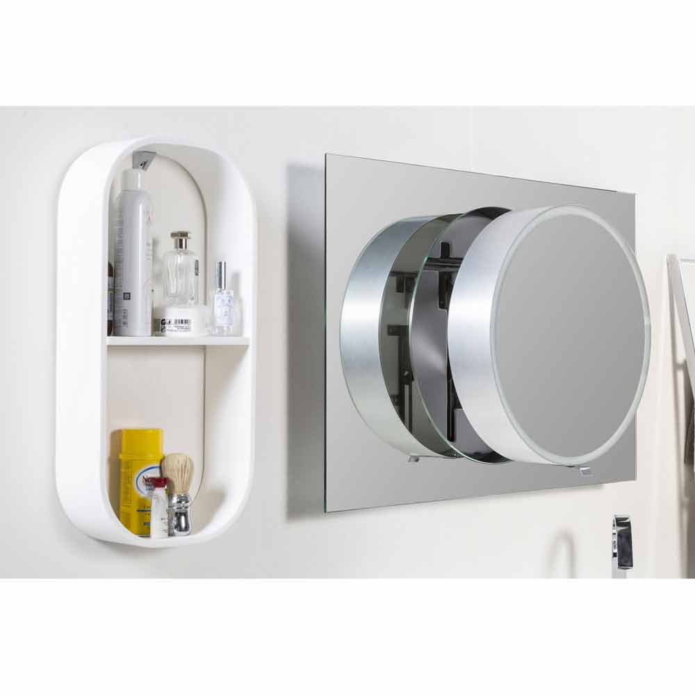 6 mm leštěné zrcadlo s vnitřní kruhovou strukturou, které lze osvětlit LED a je samohybné. Kruhová část se jednoduchým gestem posune směrem k uživateli, přiblíží se k obličeji a rozsvítí se na obvodu.