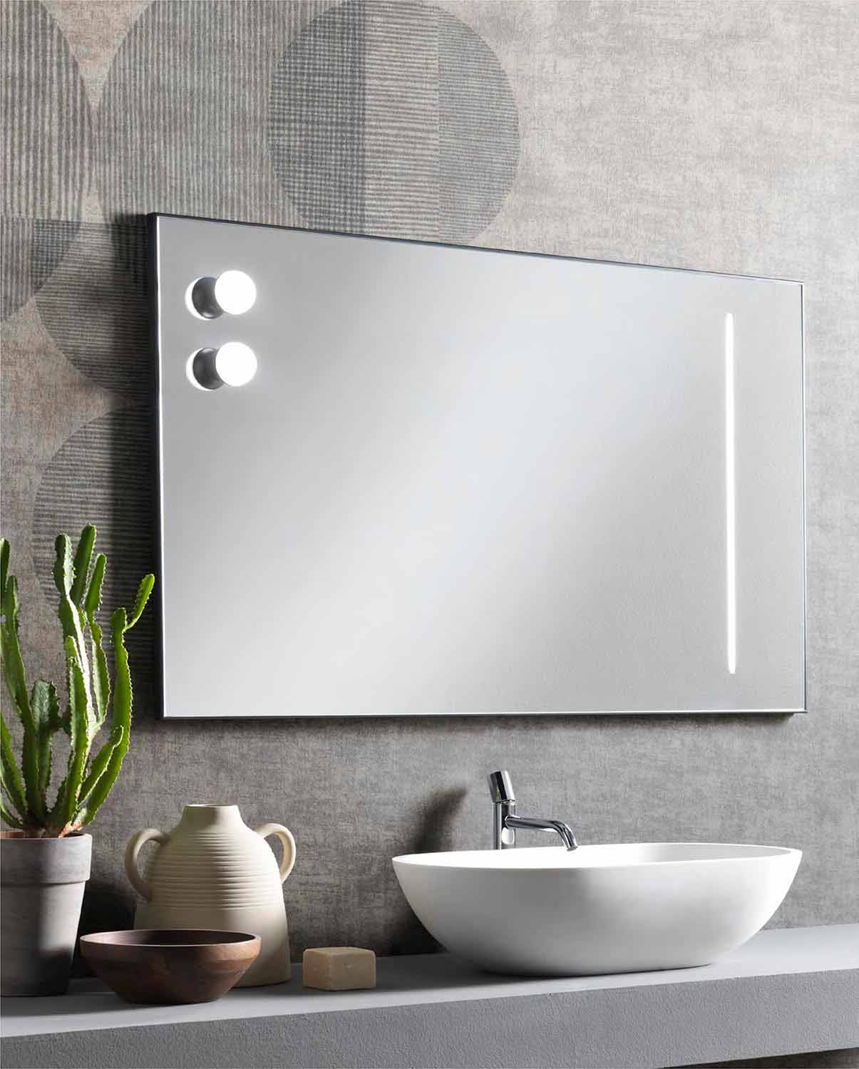 Nástěnné zrcadlo se dvěma lampami a hliníkovým rámem v designu Made in Italy.