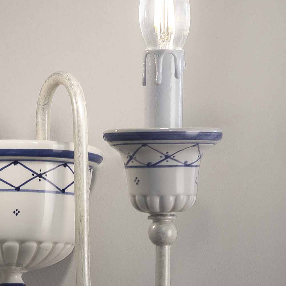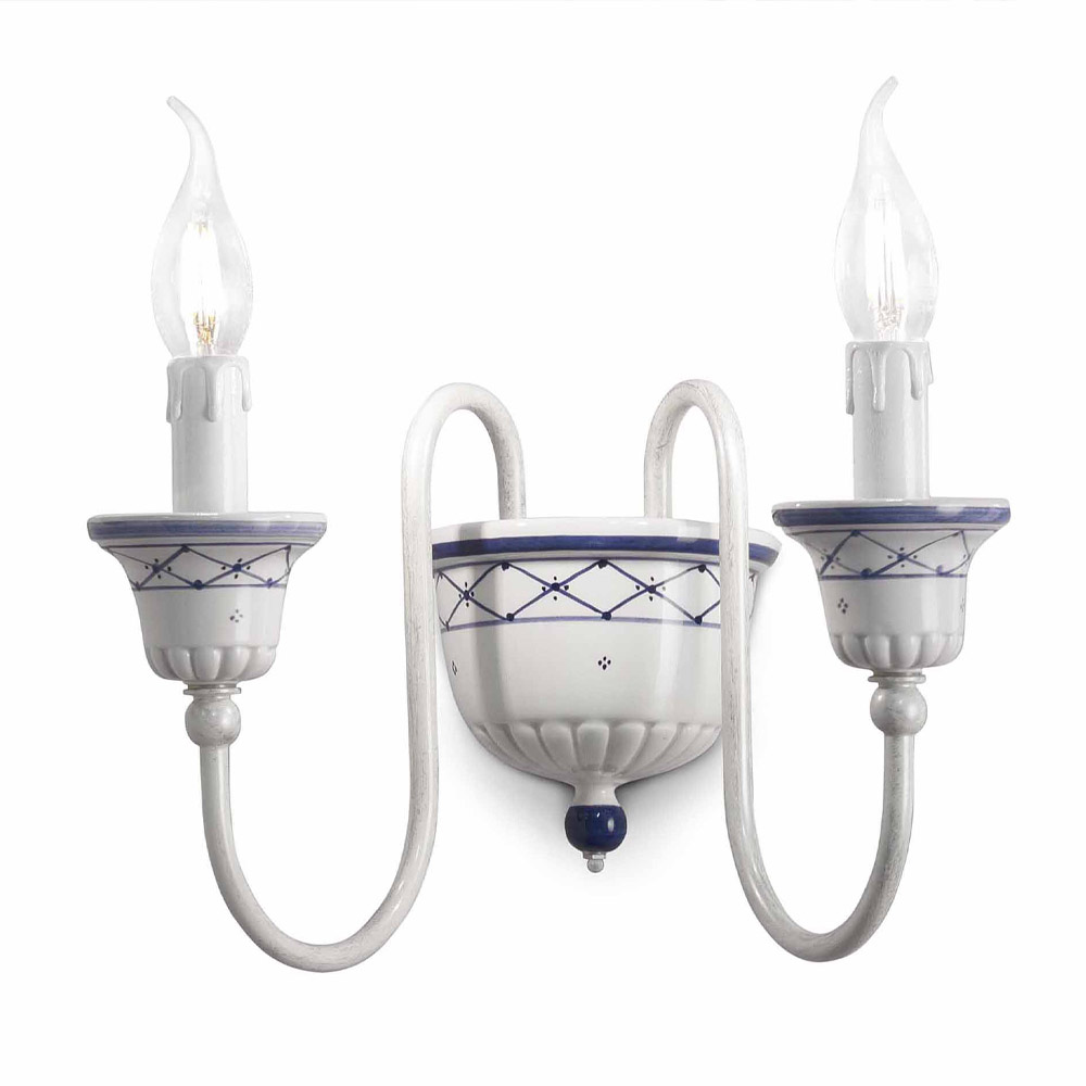 Nástěnná lampa z mosazi a ručně malované keramiky, 2 svítidla vyrobená v Itálii od Ferroluce.