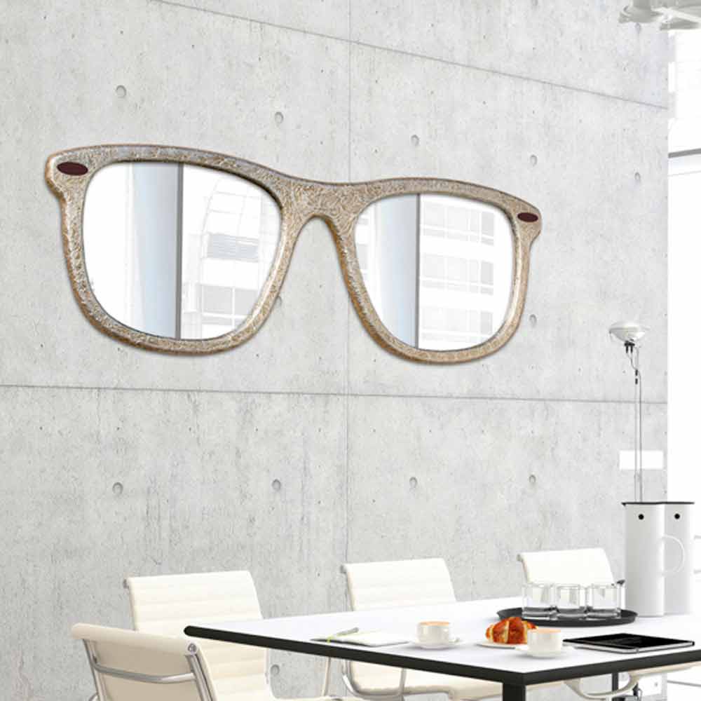 Tato zrcadlová zrcadla, charakterizovaná šikmými, jemnými, jednoduchými a jemnými čarami, s originálním tvarem, který připomíná sluneční brýle se zrcadlovými čočkami, může přinést dotek elegance a tvořivosti v jakémkoliv nábytku a prostředí, ve kterém je vložen.