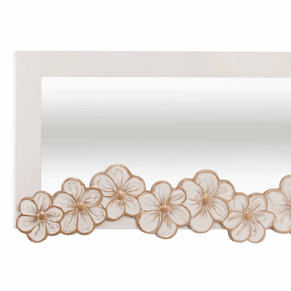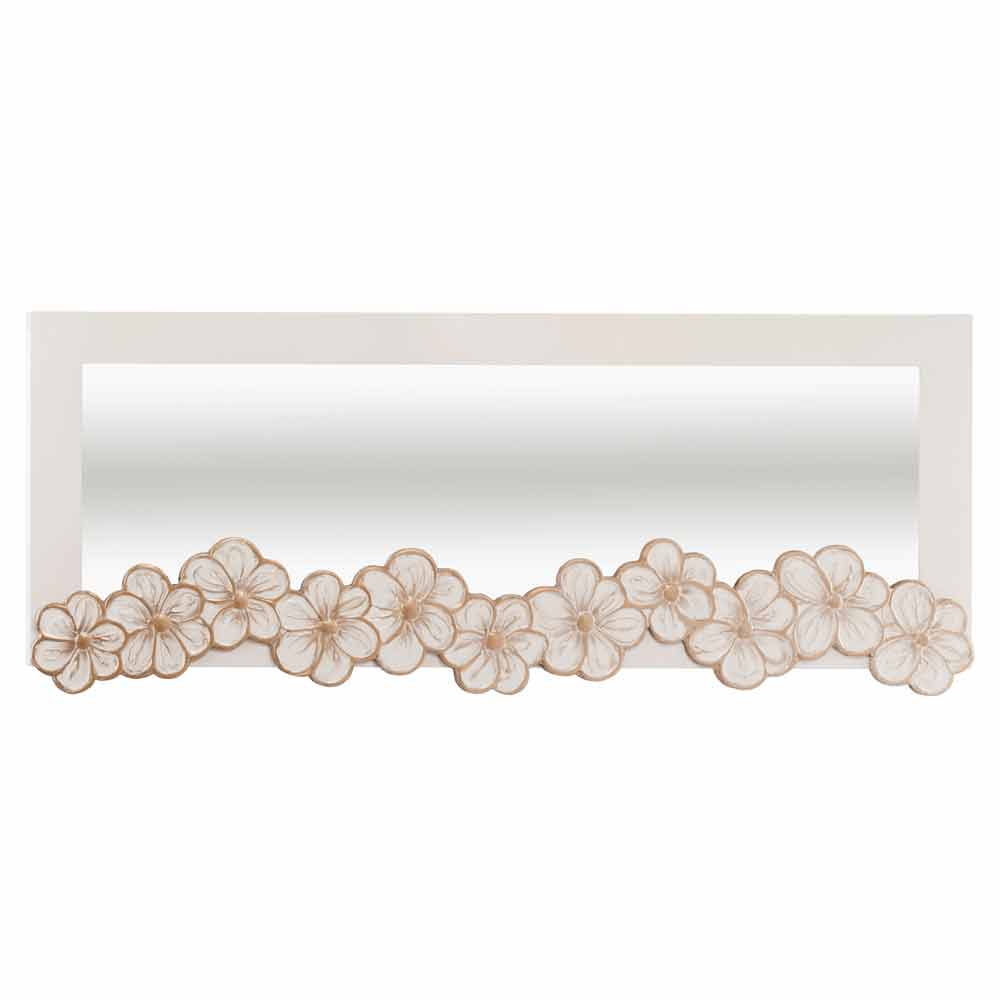 Senapina je zrcadlo ve tvaru stěny s designem, který připomíná přírodu díky květinové kompozici na jedné straně.