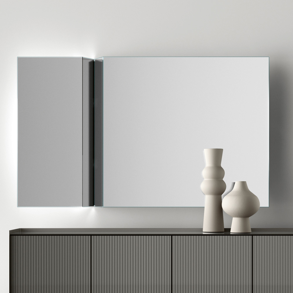 Dvoudílná struktura je nejen vizuálně přitažlivá, ale také dodává jedinečnou vizuální dynamiku , díky níž je každý odraz uměleckým dílem. Použití vysoce kvalitních materiálů zajišťuje jasný a přesný odraz, zatímco robustní upevnění zajišťuje odolnost a stabilitu.