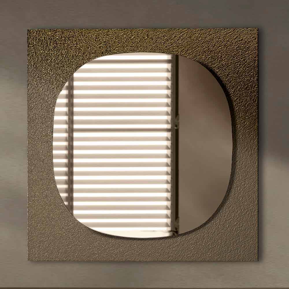 Nástěnné zrcadlo z bronzového kovaného skla vyrobené v Itálii.