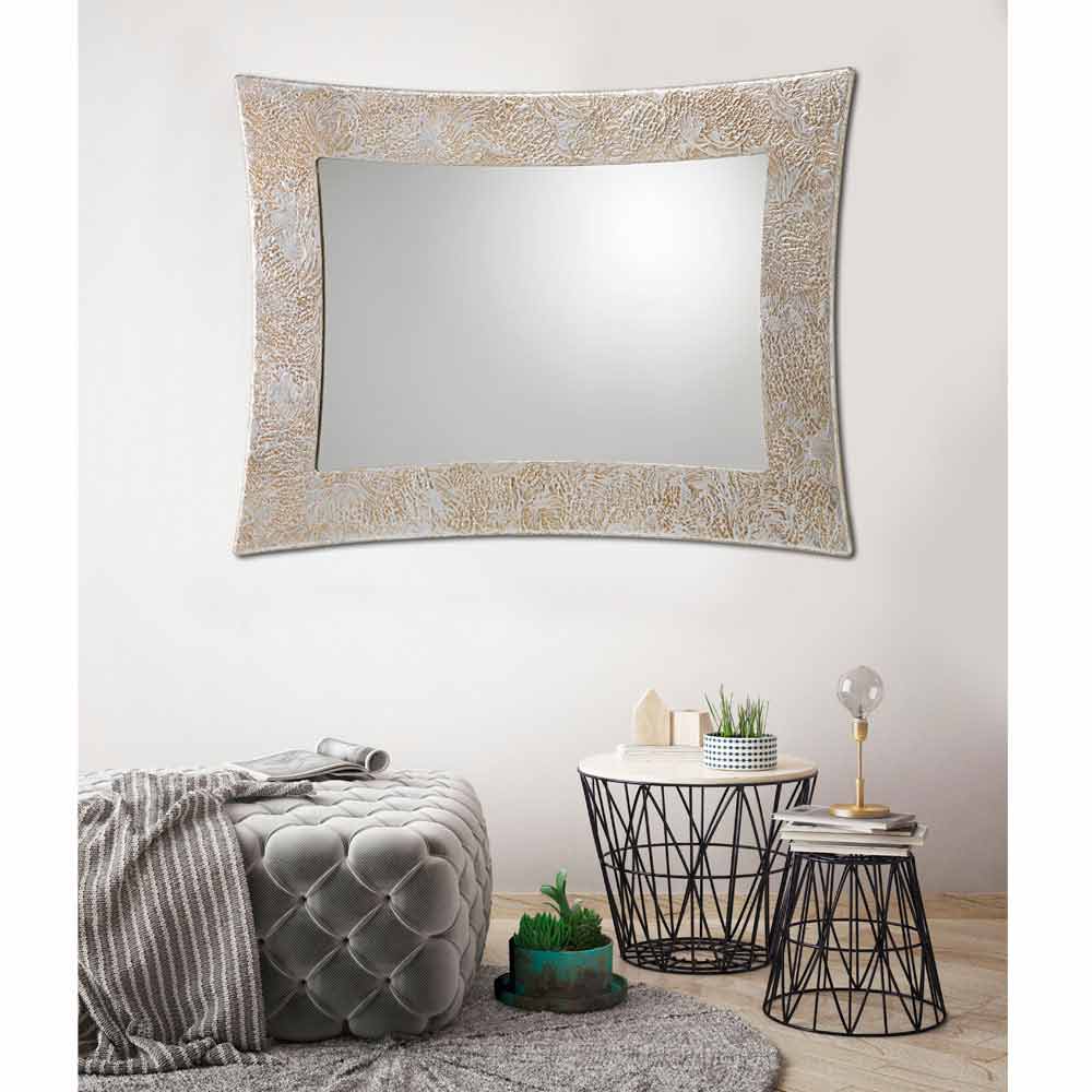 Nástěnné zrcadlo v pryskyřici a benátské stříbrné listy.