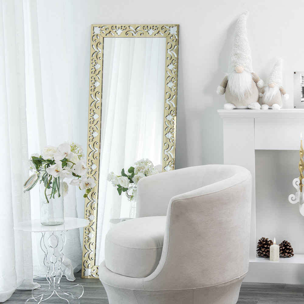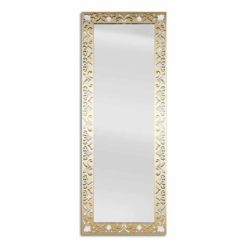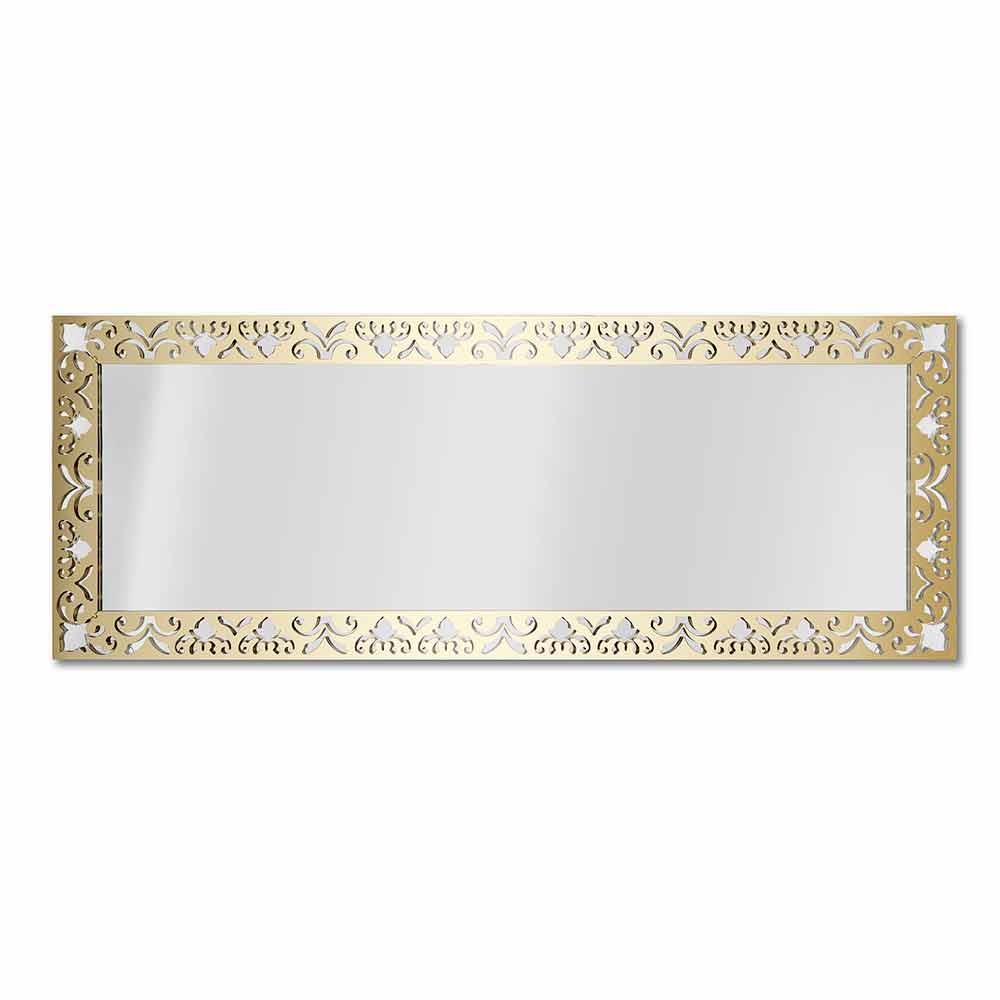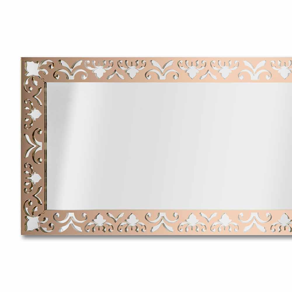 Moderní designové obdélníkové nástěnné zrcadlo se zlatým, stříbrným nebo bronzovým rámem z plexiskla vyrobené v Itálii.