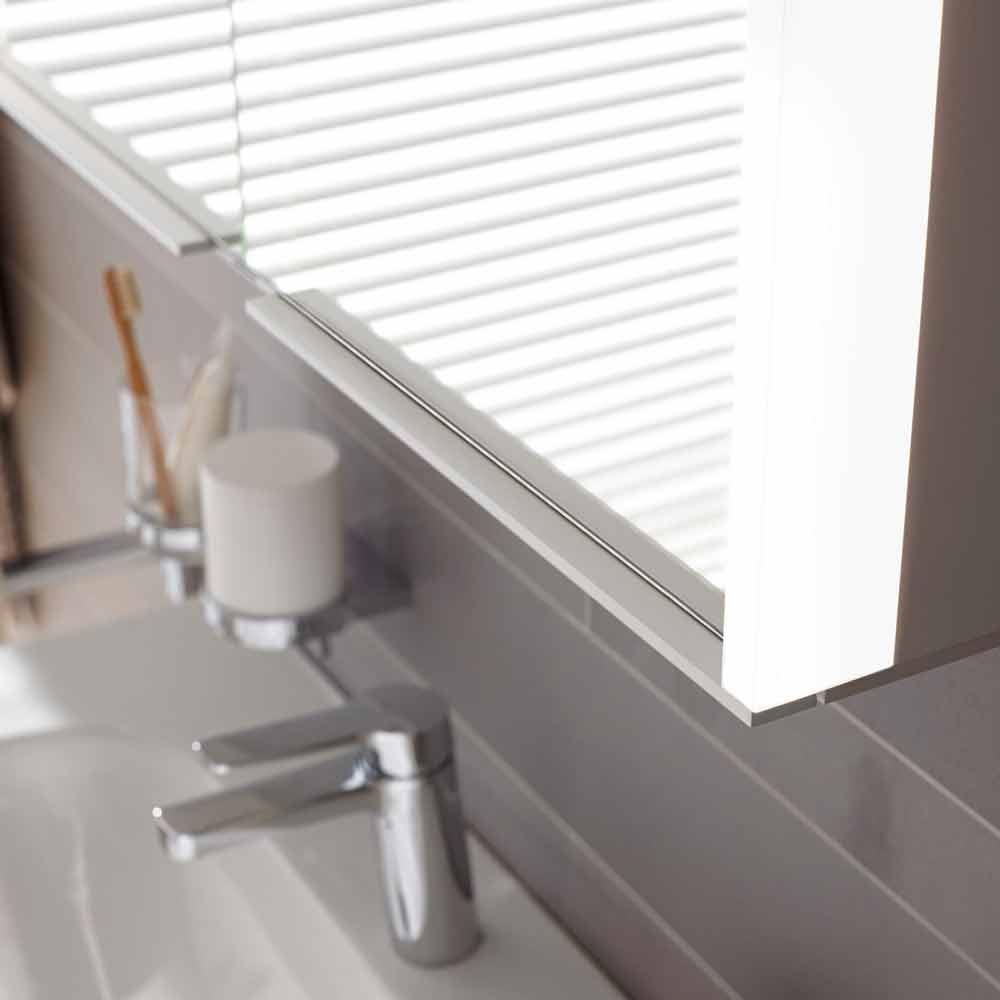 LED osvětlení, která je snadno nastavitelná a stmívatelná pomocí elektronického spínače snímače, čímž vytváří jedinečnou atmosféru v místnosti. Po otevření se 2 dveře otáčejí kolem světelných pásů, což umožňuje dosáhnout optimálního osvětlení jak při zavření, tak při otevření.