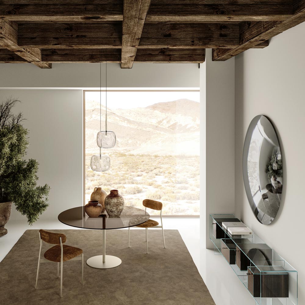 Toto kruhové zrcadlo je emblémem střídmosti a minimalismu , doplňkem nábytku, který se dokonale přizpůsobí jakémukoli modernímu i tradičnímu prostředí. Jeho reflexní, bezchybný povrch nejen zesiluje světlo a prostor, ale také slouží jako elegantní ústřední bod v každé místnosti.