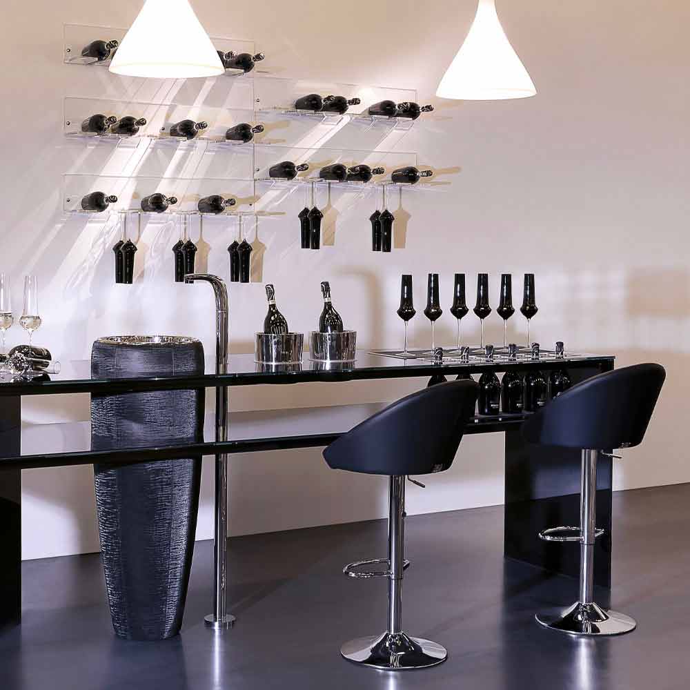 Nástěnný držák na 6 lahví v průhledném plexiskle Vyrobeno v Itálii.