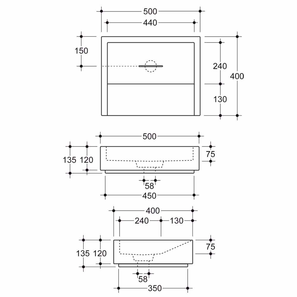 Designové obdélníkové keramické umyvadlo vyrobené v Itálii Dalia
