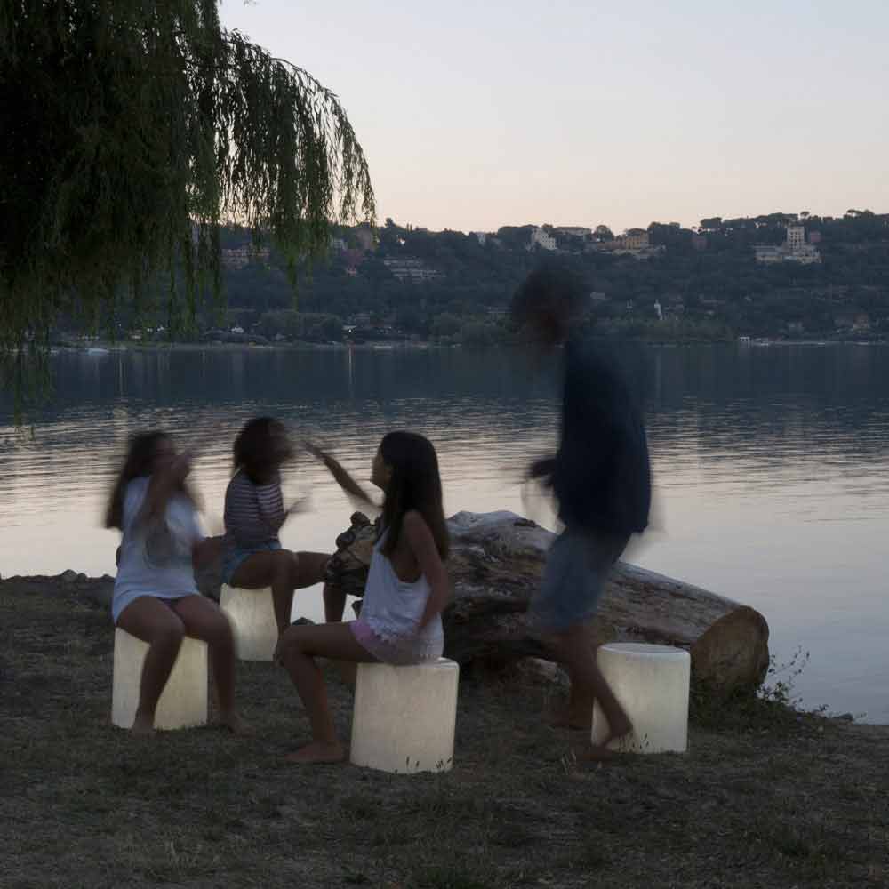 Vyrobeno společností In-es.artdesign pro kolekci Out in laprene a Nebulite: inovativní materiál vyrobený z pryskyřice a vláken, jehož žíly dodávají žárovce zvláštní "měsíční" a mramorový efekt.