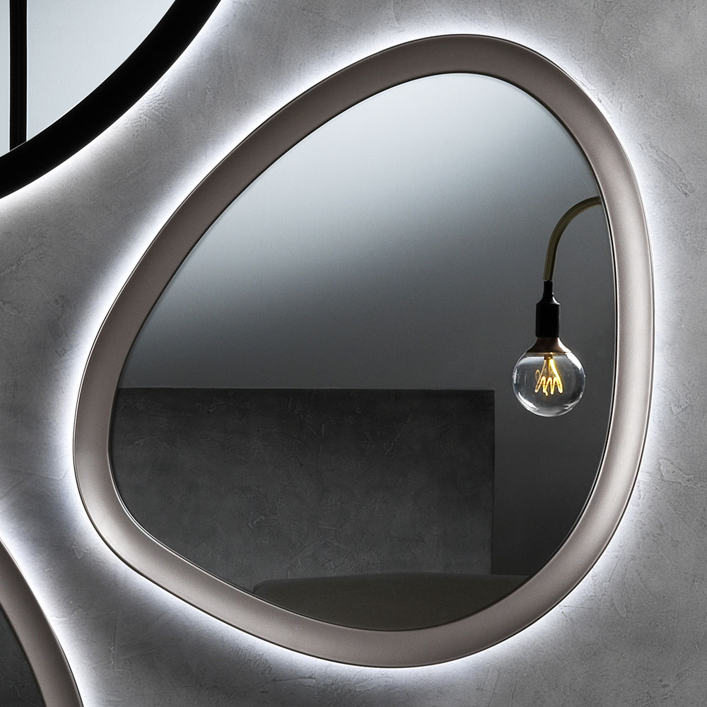 Ponořte se do kouzla tohoto podsvíceného zrcadla , skutečného nábytkového prvku, který promění každou stěnu v galerii moderního umění. Svým tvarem se distancuje od konvenčnosti a stává se ústředním bodem, který upoutá pozornost a podněcuje představivost.