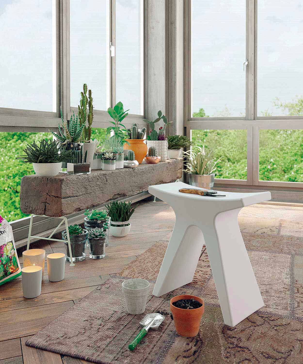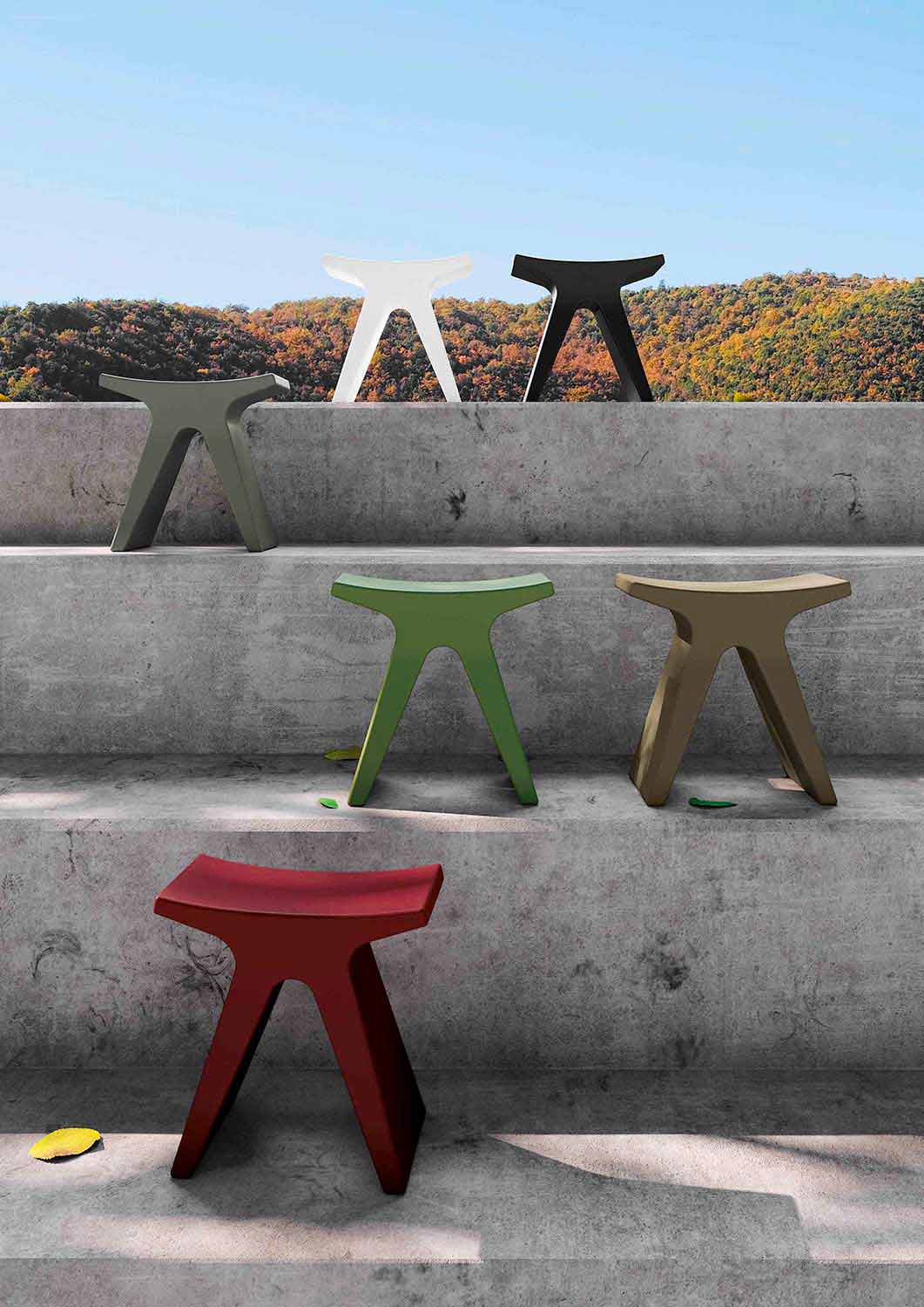 Nízká venkovní stolička s moderním designem z polypropylenu, vyrobené v Itálii