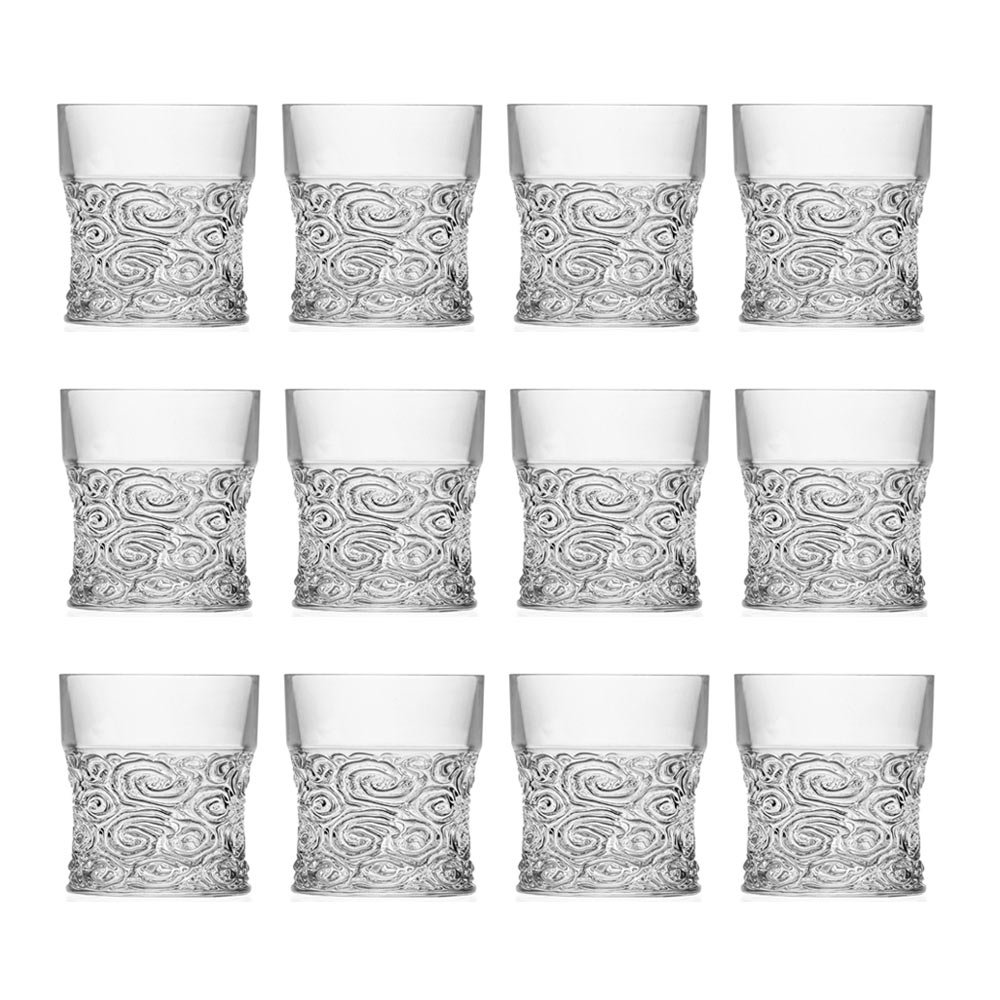 Dvojité staromódní brýle z eko krystalu s kulatou dekorací 12 kusů vyrobené v Itálii.