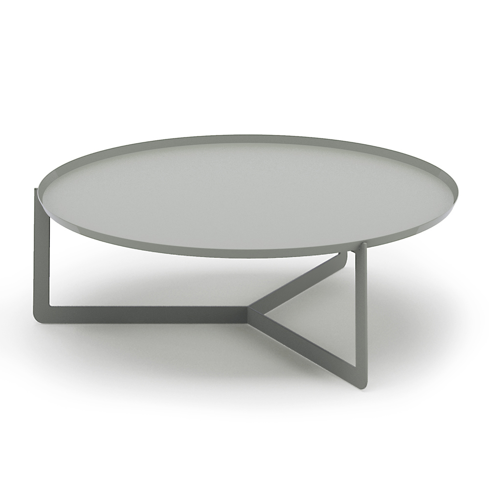 Moderní kulatý zahradní konferenční stolek vyrobený z kovu, cenný předmět vyrobený v Itálii.