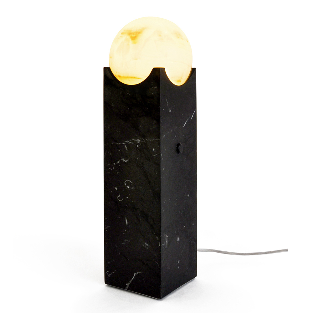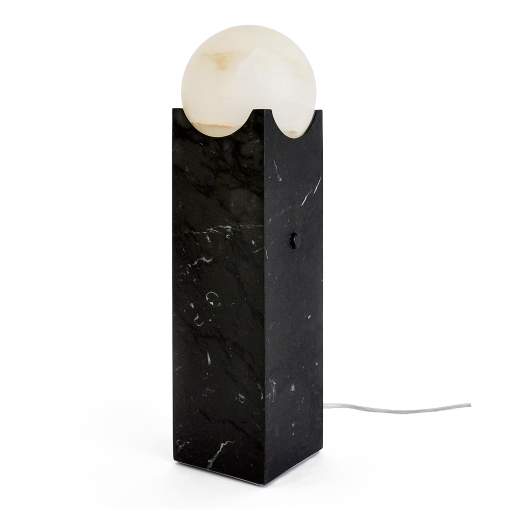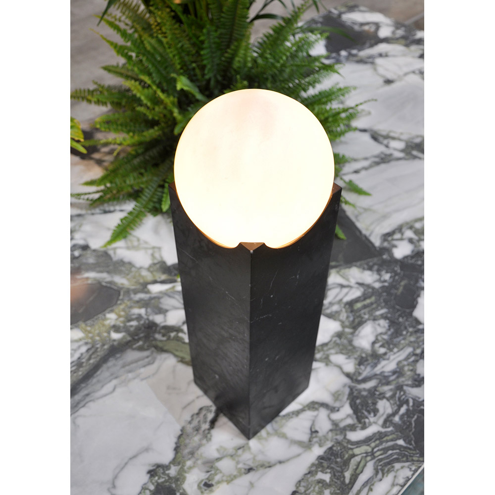 Tato stolní lampa představuje spojení mezi majestátem černého mramoru a čistotou světelné koule. Odvážný, moderní design vytváří silný, ale vyvážený vizuální kontrast, ideální pro moderní výzdobu těch, kteří milují být obklopeni krásou a luxusem .