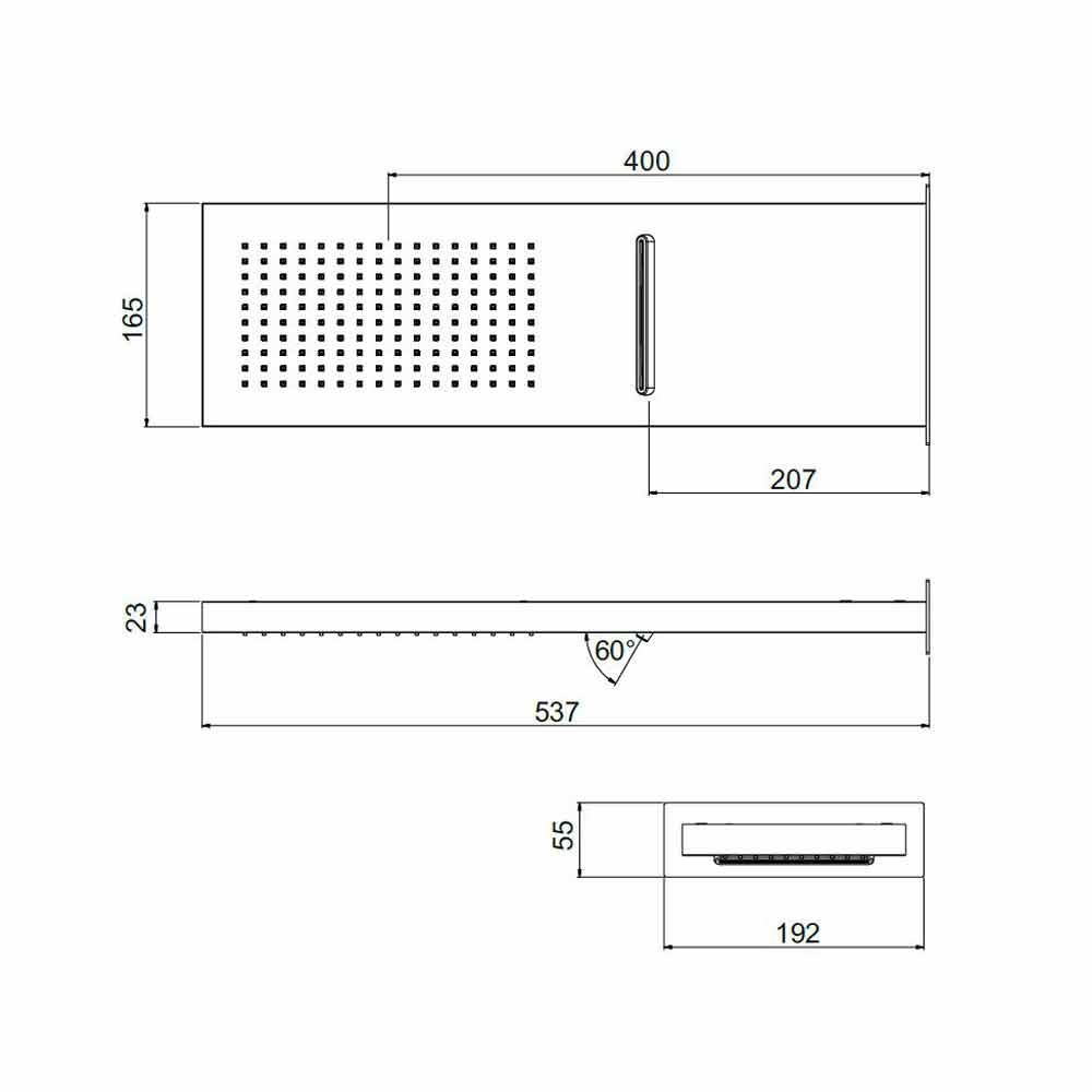 Obdélníková nerezová sprchová hlavice s dvojitou tryskou Made in Italy.
