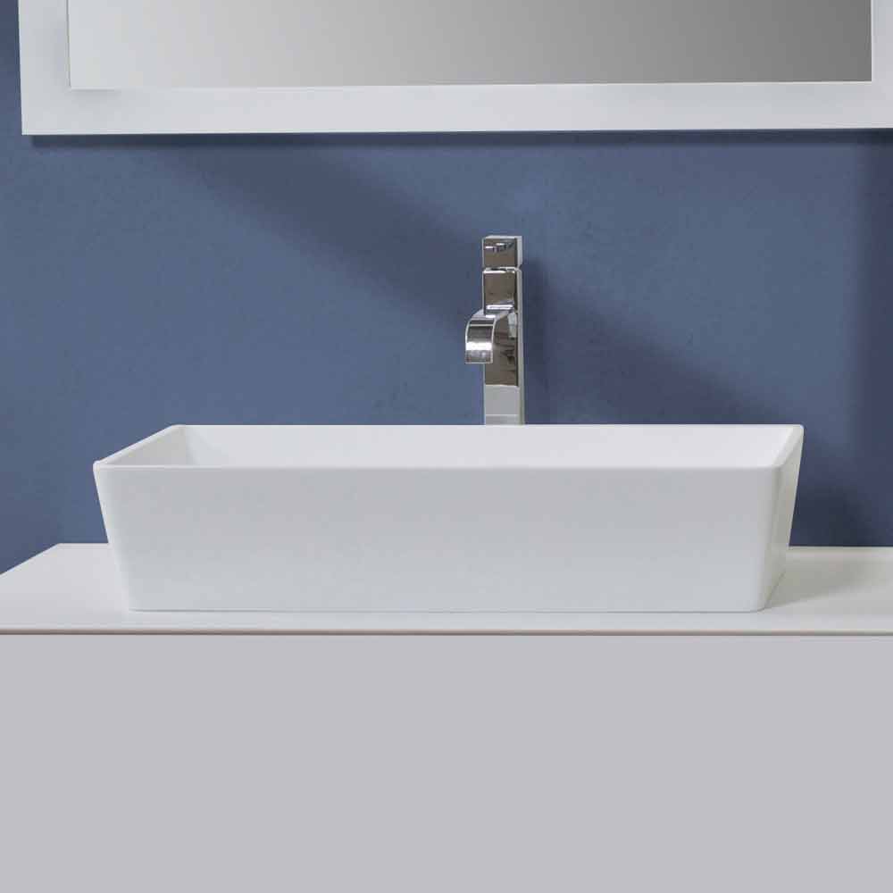 Obdélníkové umyvadlo na desku z optické bílé pryskyřice.