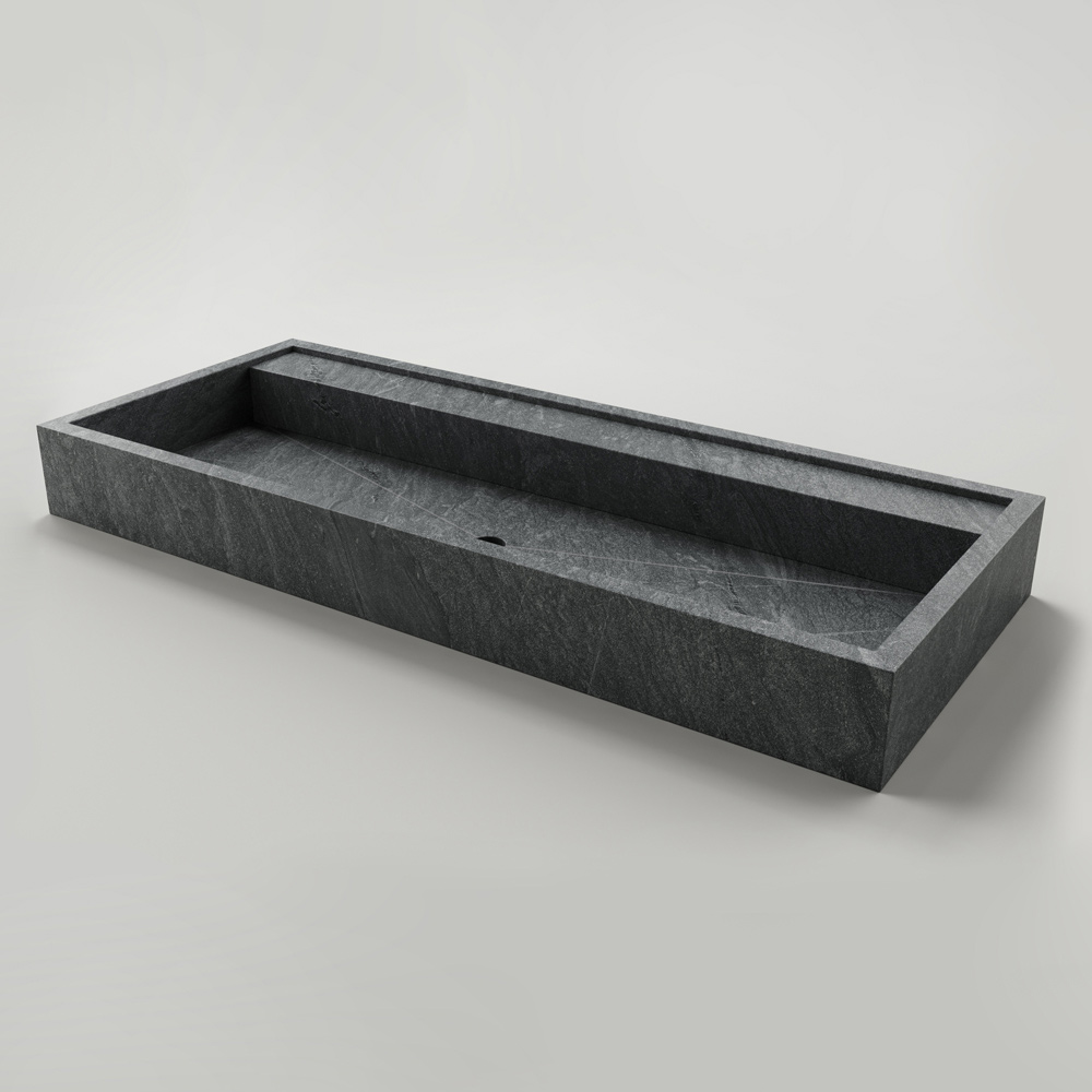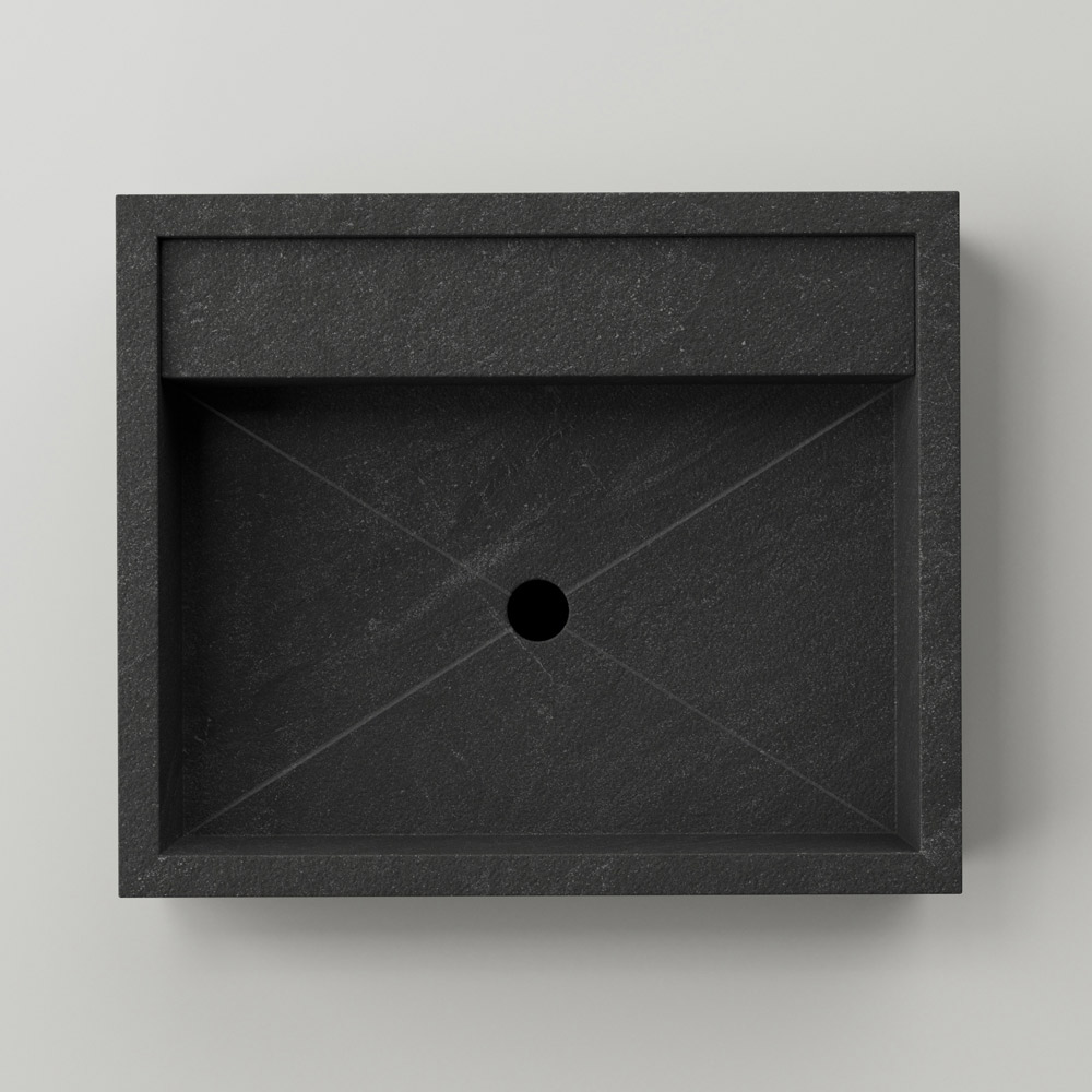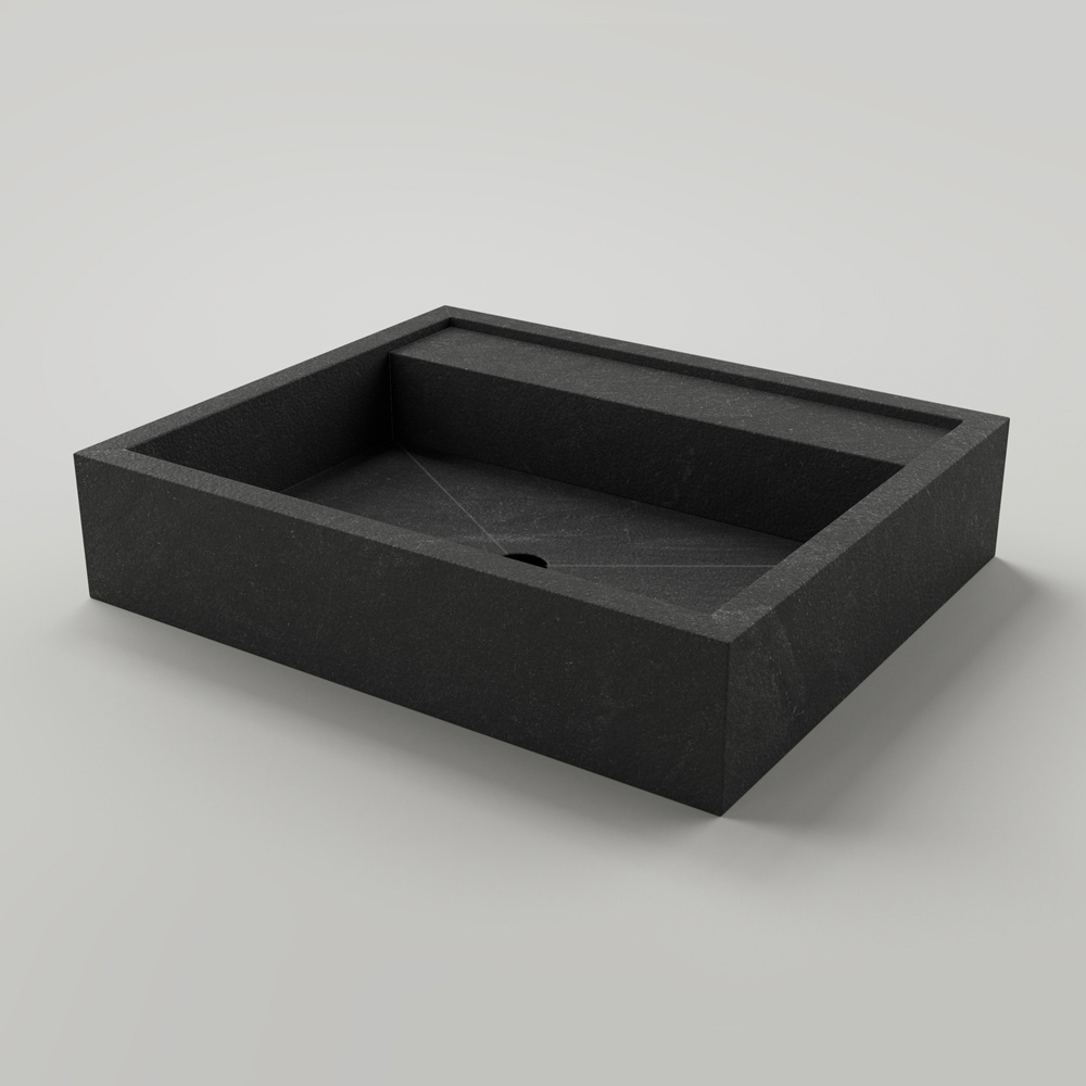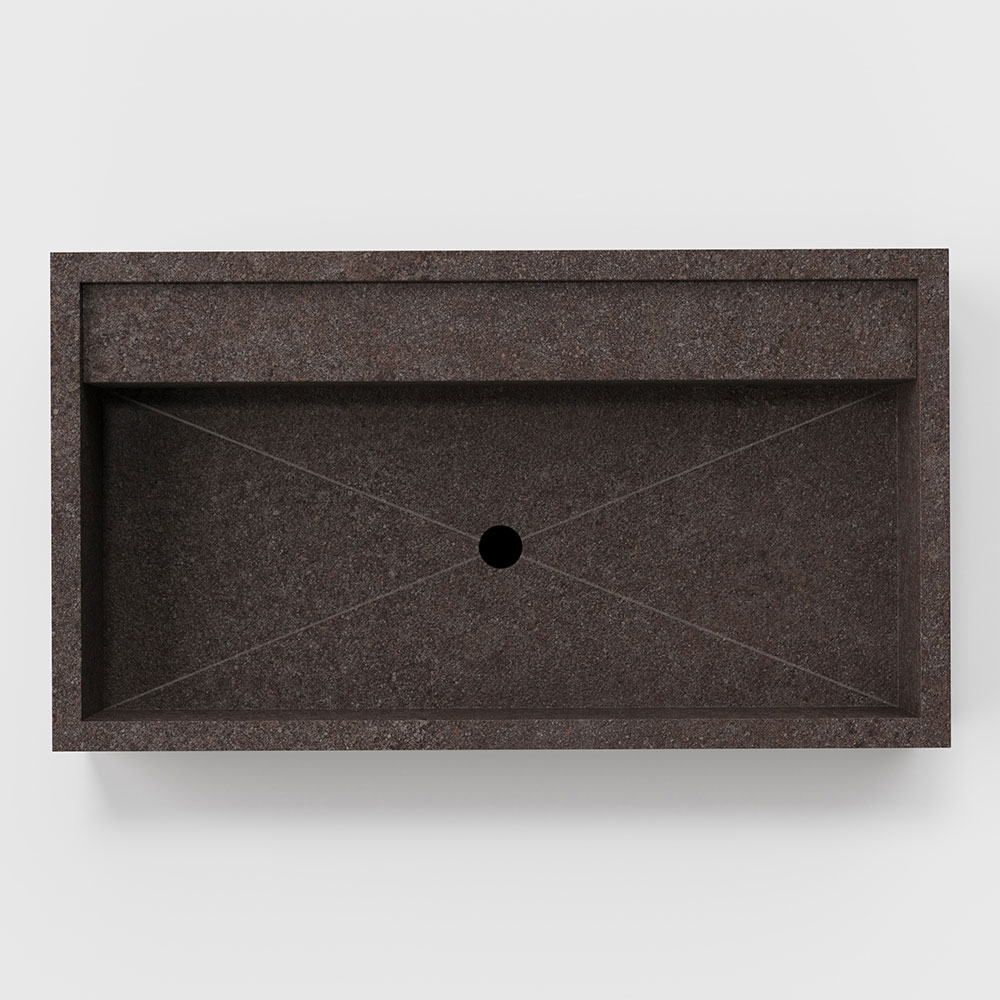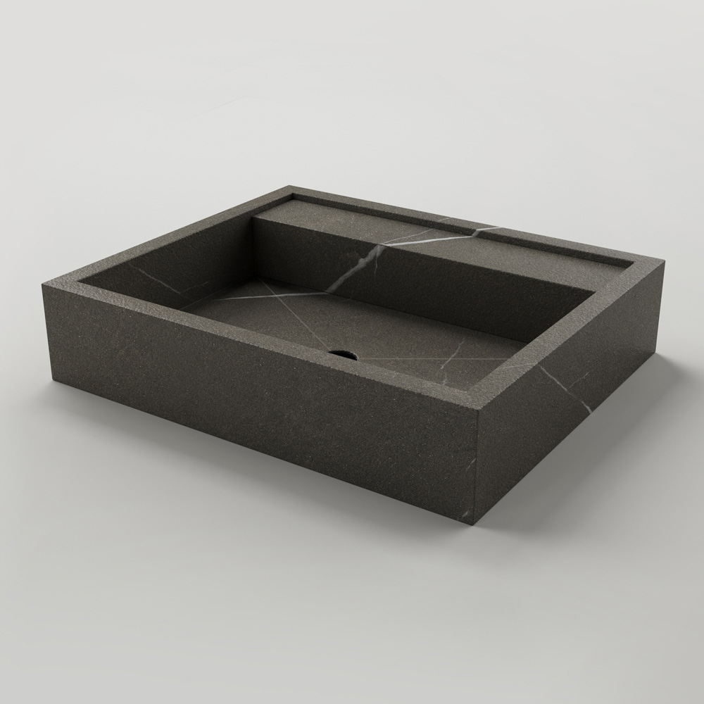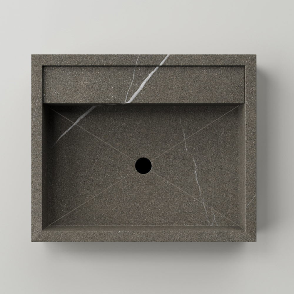 Obdélníkové umyvadlo na desku z porcelánové kameniny s efektem kamene Made in Italy.