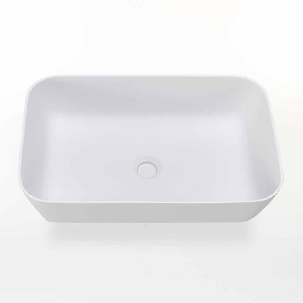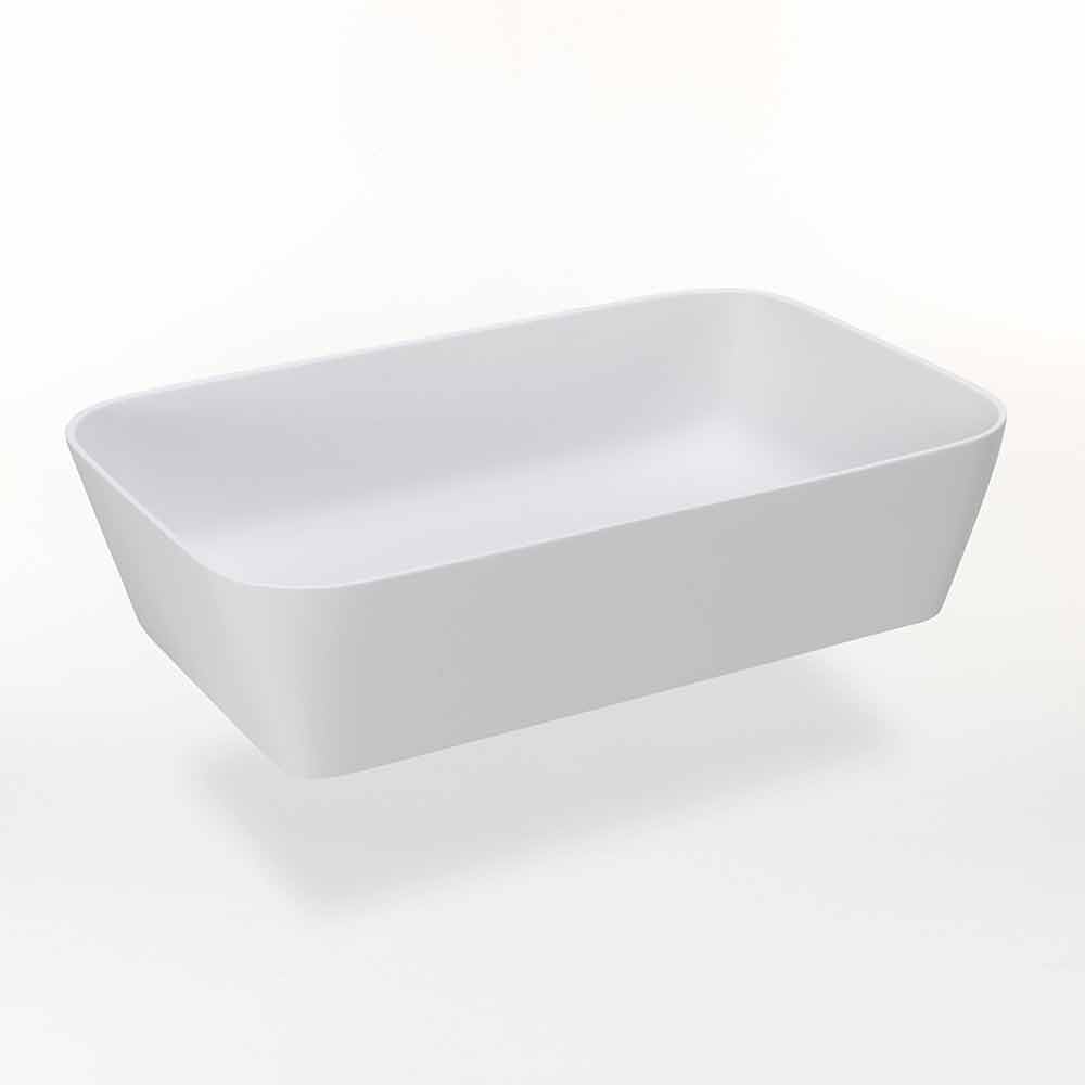 Obdélníkové umyvadlo na desku moderního stylu ručně vyrobené v Itálii z neprůhledné pryskyřice.