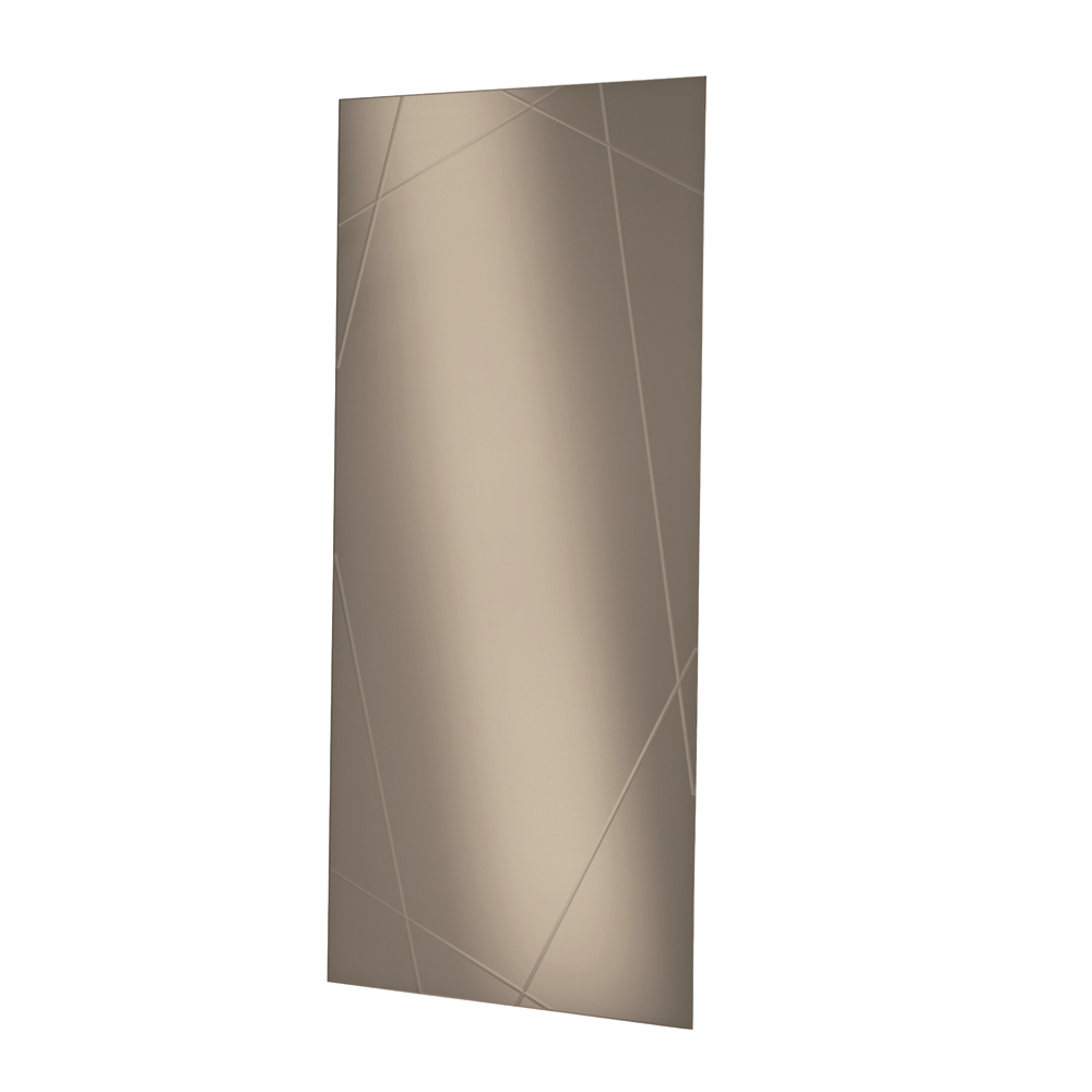 Zrcadlo má obdélníkový tvar, tloušťku 4 mm a je opatřeno laserově řezanými rytinami , které na povrchu vytvářejí elegantní geometrický vzor. Tento dekorativní detail vytváří rafinovanou hru světla a odrazů, což zrcadlu dodává hloubku a osobitost.