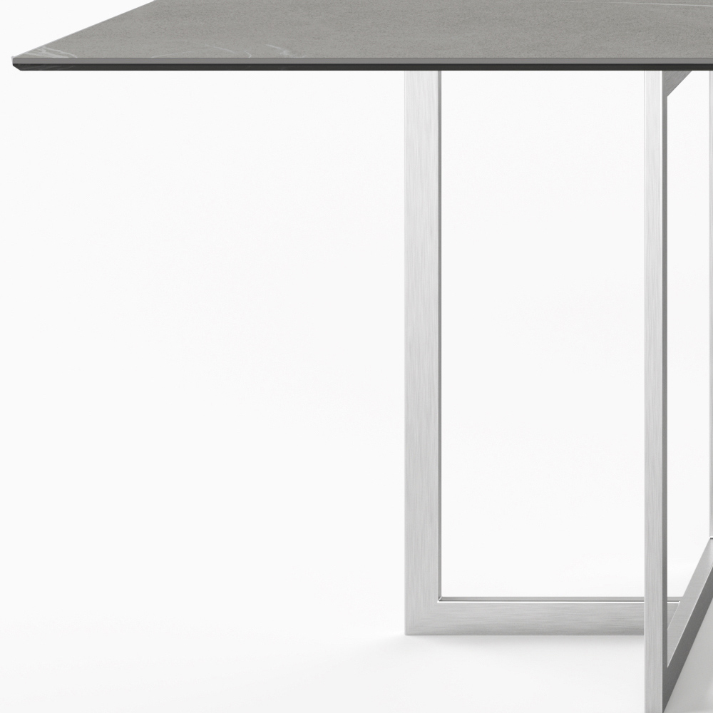 kvalitou materiálů zvolených pro jeho výrobu. Podstavec z nerezové oceli také umožňuje umístění stolu ve venkovním prostředí, čímž obohacuje domácí i uzavřené venkovní prostory nádechem