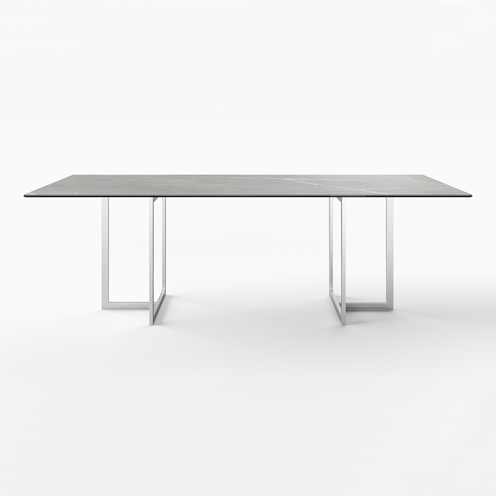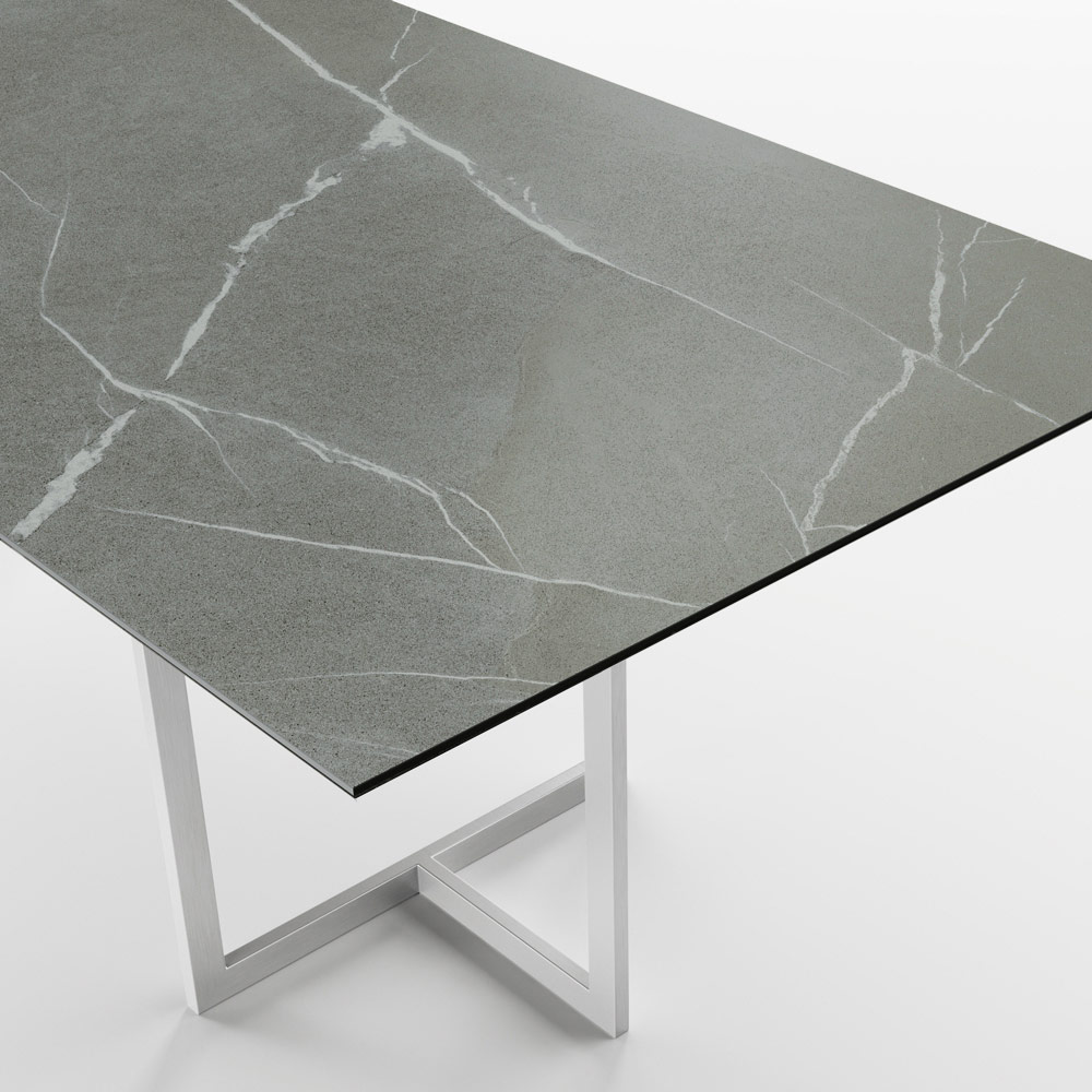 Jídelní stůl z porcelánové kameniny s efektem kamene a nerezové oceli Made in Italy.