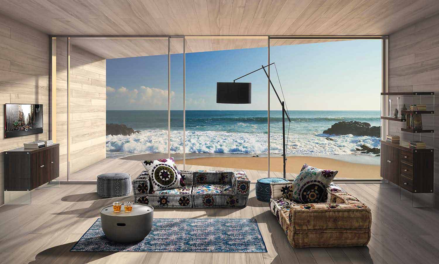 obdélníkový koberec schopný poskytnout mnoho uspokojení: rozděluje obytný prostor, vytváří