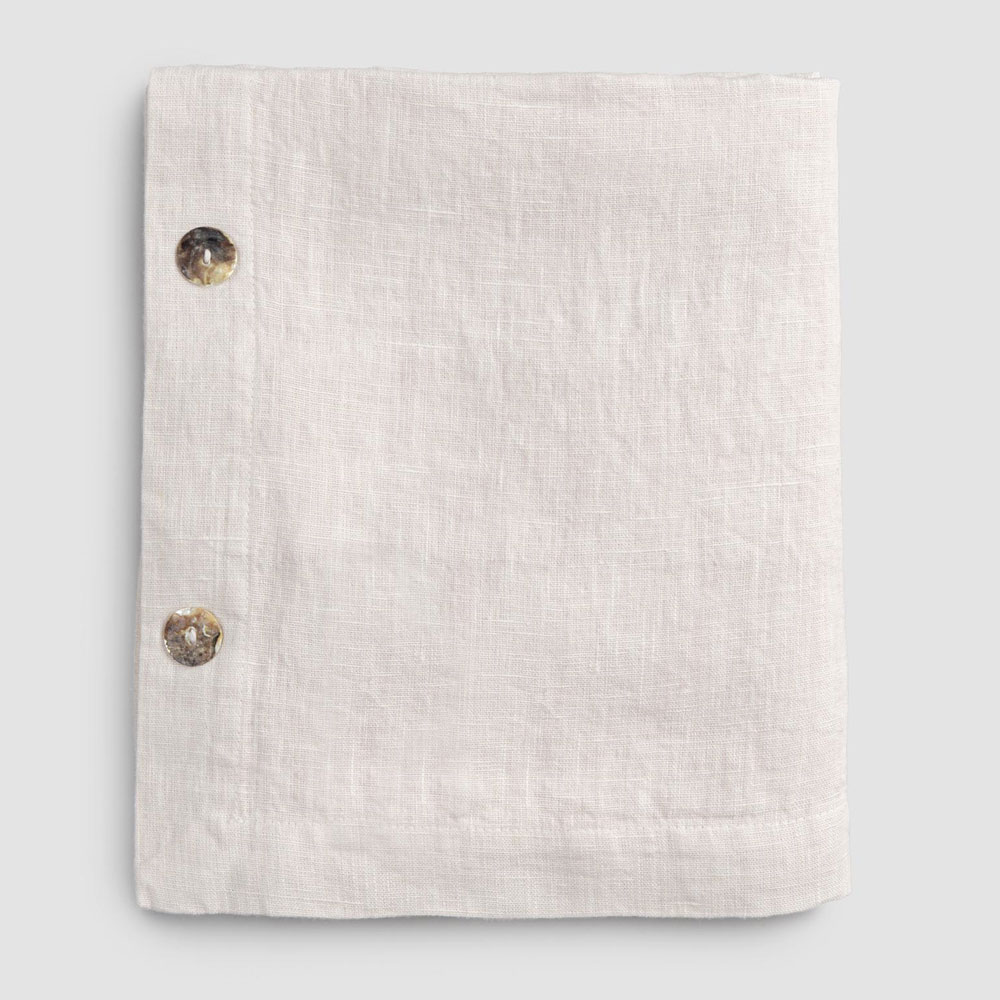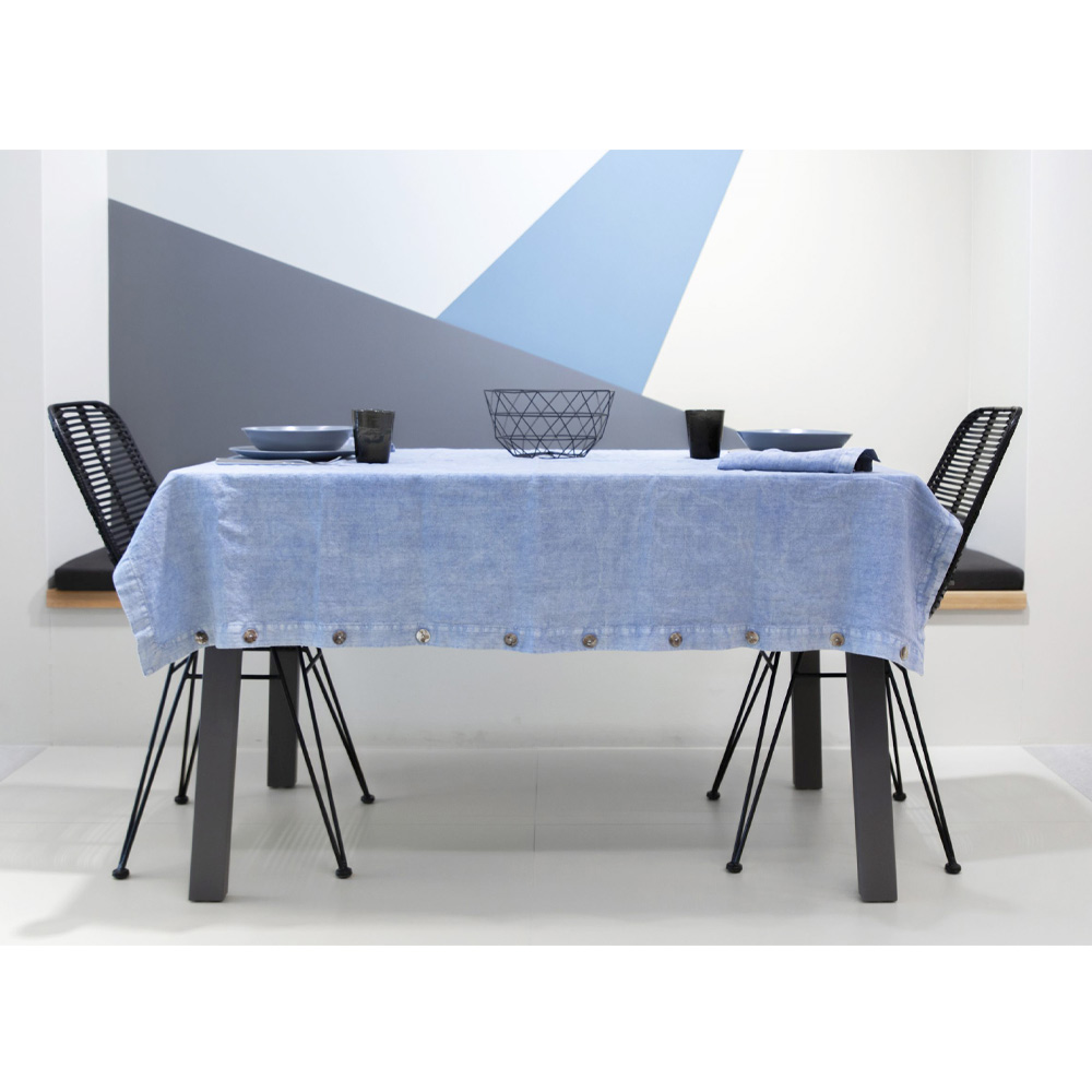 Modulární obdélníkový plátěný ubrus s perleťovými knoflíky, ručně vyráběná kvalita vyrobená v Itálii.