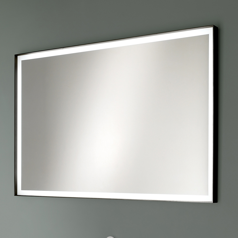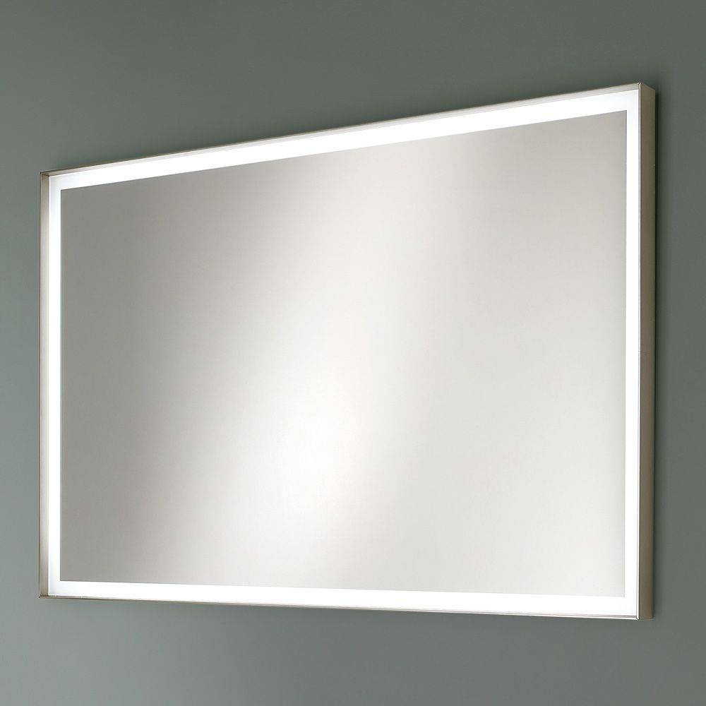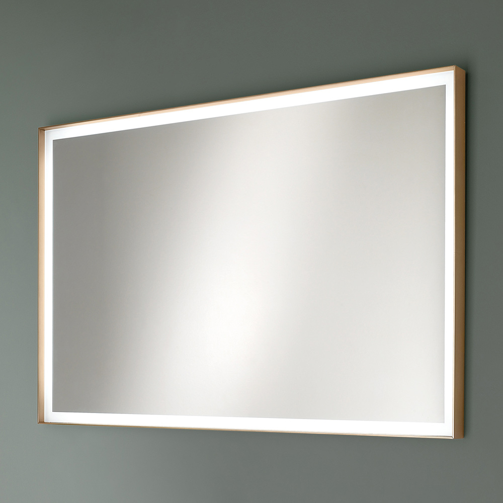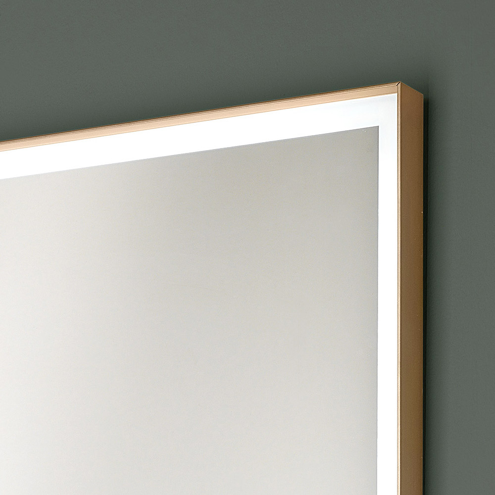 Obdélníkové nástěnné zrcadlo s kovovým rámem ve 4 povrchových úpravách a vedeným světlem, vyrobené v Itálii.