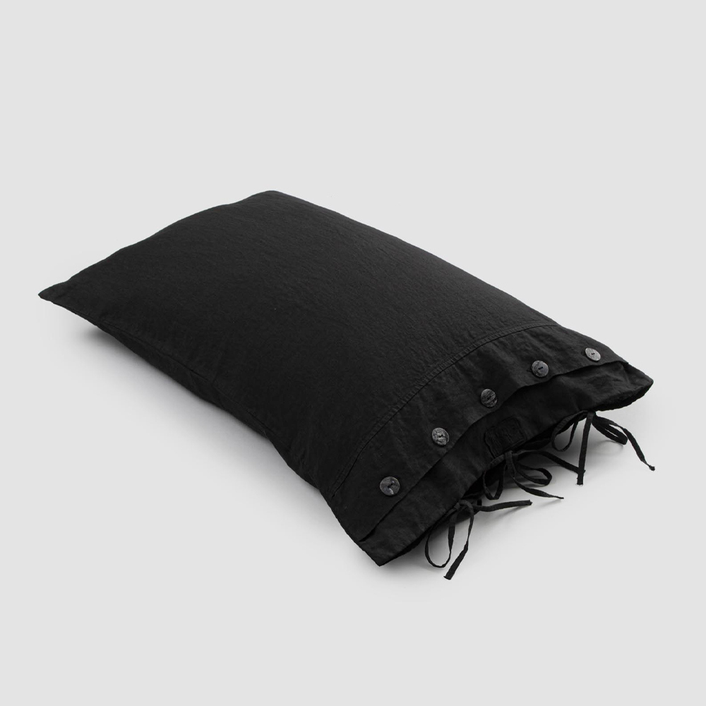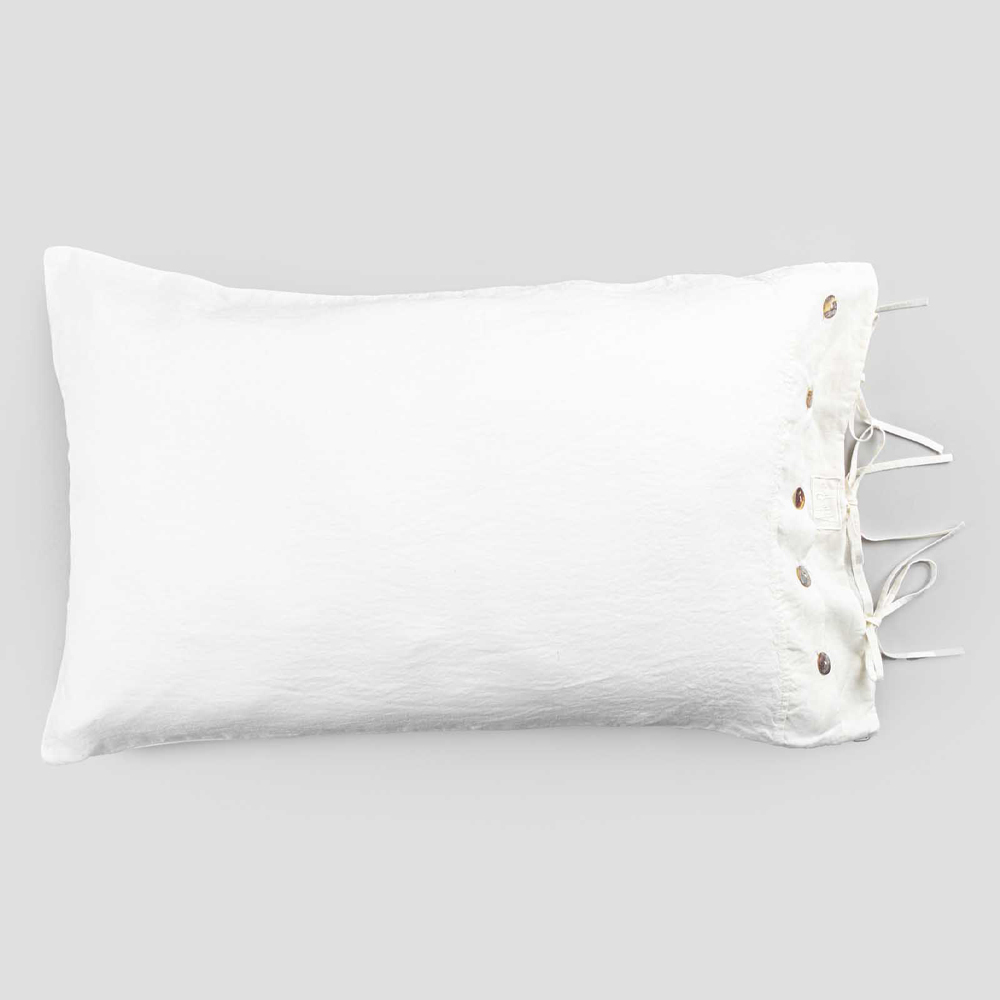 Luxusní povlak na polštář v bílém nebo černém plátně s knoflíky a tkaničkami, vyrobený v italské kvalitě.