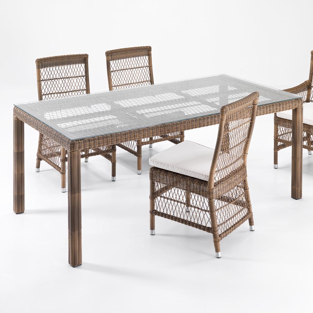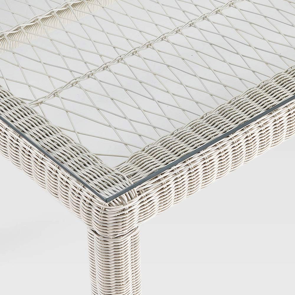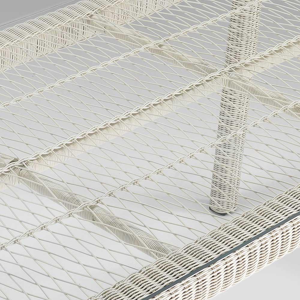 styl tkaní je rafinovaný a jemný a spolu s velmi vysokou kvalitou materiálů a jeho rozhodnými tvary činí tento stůl ideálním pro interiérové a exteriérové vybavení, a to jak pro soukromé, tak pro smluvní prostředí, jako jsou terasy, verandy, zahrady, ale také najdou perfektní umístění u bazénu.