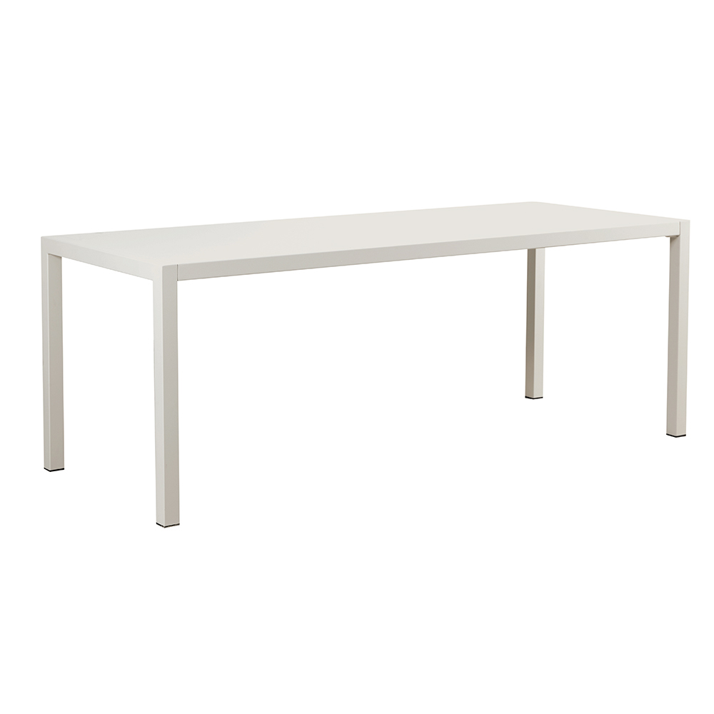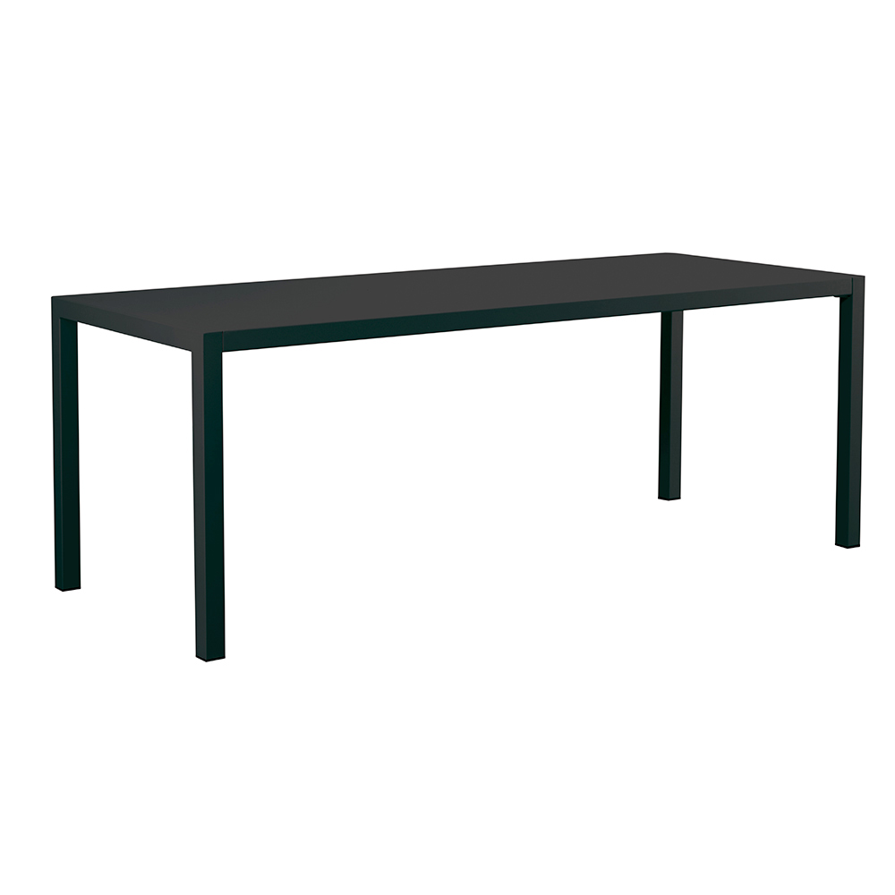 Stohovatelný a samonivelační obdélníkový venkovní jídelní stůl Vyrobeno v Itálii, kompletně z pozinkované oceli .