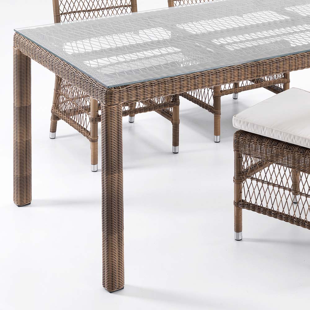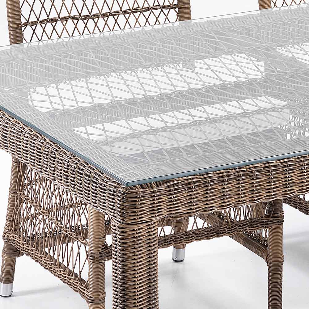 Složení obdélníkového stolu se 4 židlemi a 2 křesly z polyratanu