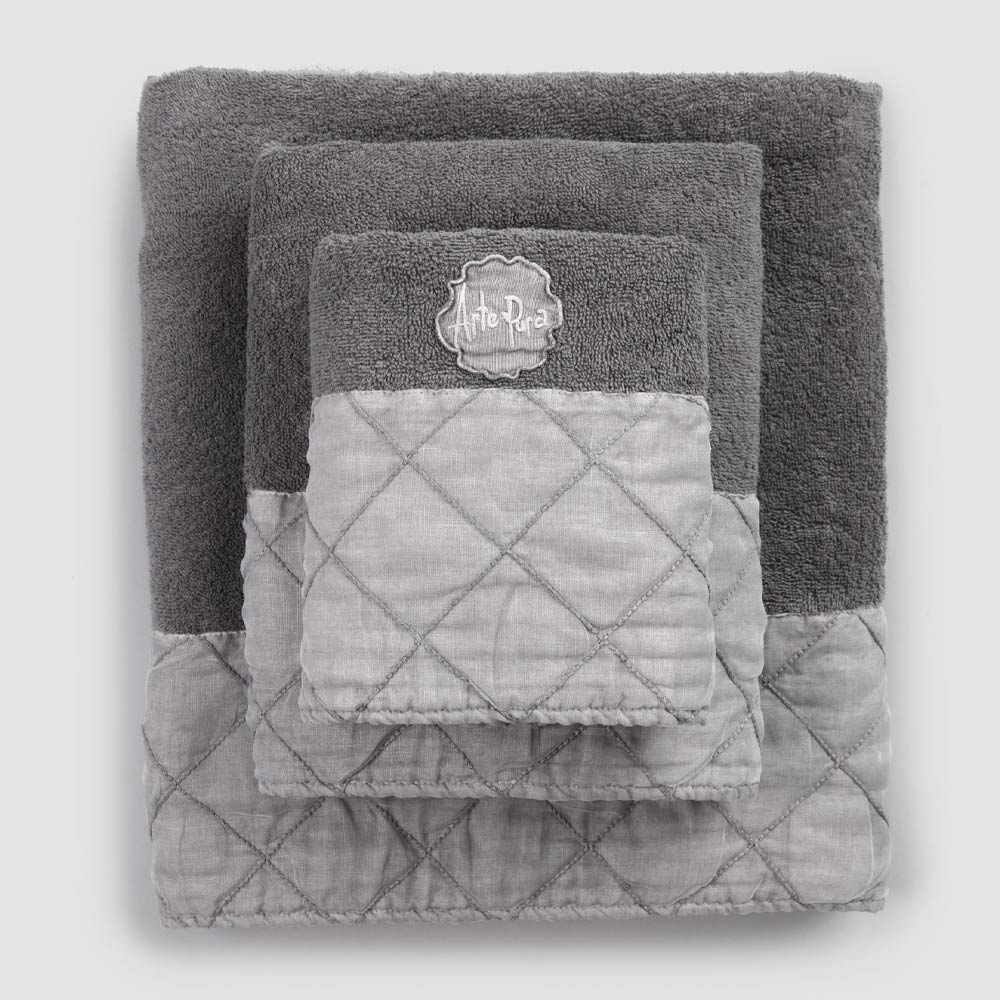 ručníků na obličej a hosty a osušky v bavlněném froté s antracitově šedou