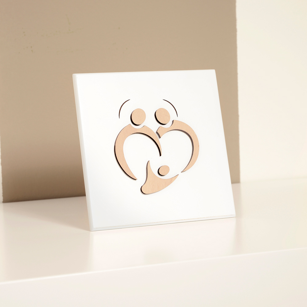 Tento obraz je výsledkem italského řemesla, figurky jsou kresleny ručně a následně malovány světlem laserového paprsku, bez plýtvání as ohledem na životní prostředí. Minimální a zásadní styl chce vyzdvihnout pouze sladkost, která pochází z reprezentace rodiny.