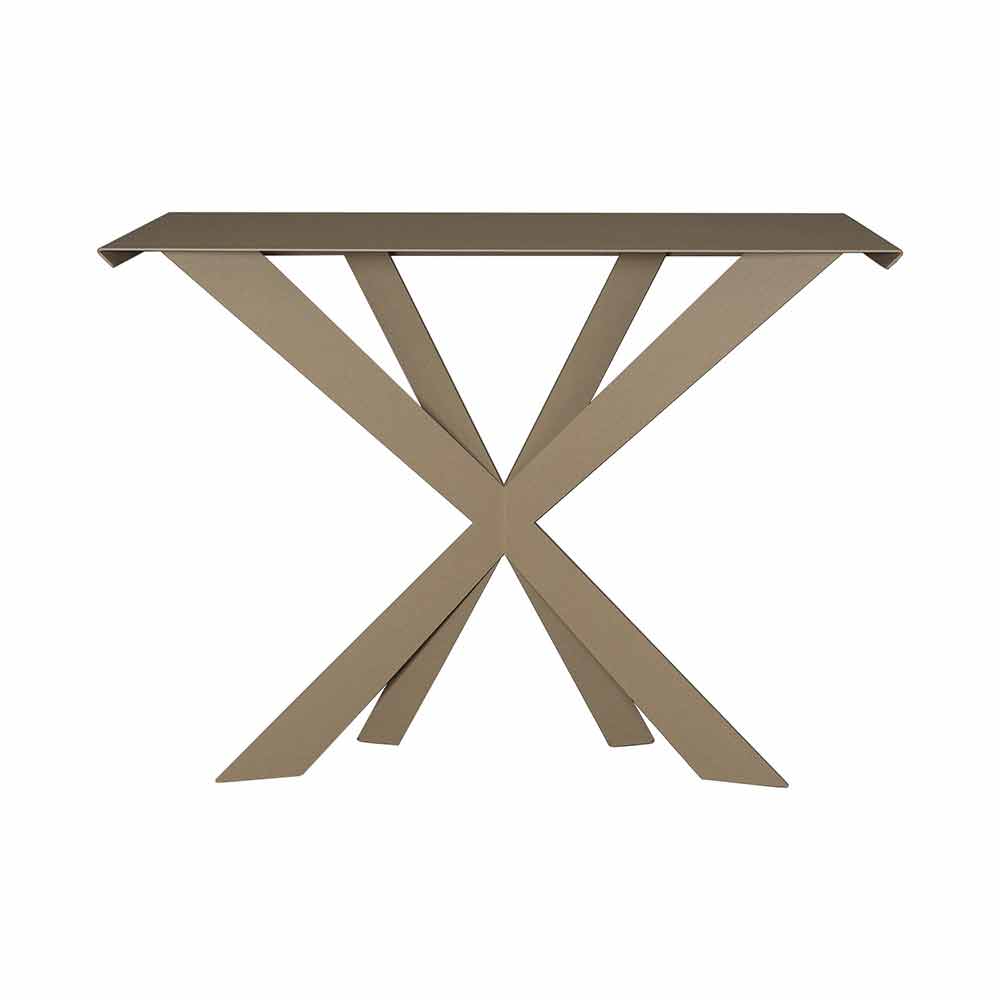 Zecchina je stabilní obývací pokoj nebo vstupní konzole charakterizovaná pravidelnými a asymetrickými nohami, které se protínají a tvoří „X“. Ručně vyráběné v Itálii železem.