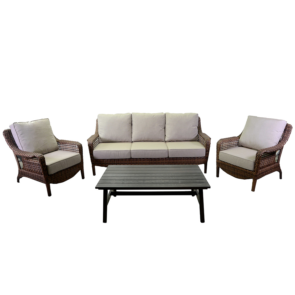 Aktualizujte svůj venkovní prostor elegancí naší obývací soupravy z umělého ratanu , která je ideální pro ty, kteří chtějí spojit styl a pohodlí . Tato souprava obsahuje třímístnou pohovku, dvě samostatná křesla a konferenční stolek, které jsou navrženy tak, aby poskytovaly maximální relaxaci a odolnost ve venkovním prostředí.