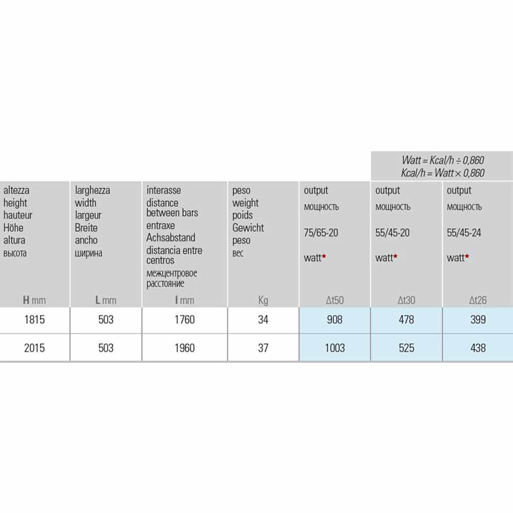 - V 1815 x L 503 x Inter. 1760 mm x výstup w (Δt50 *) 908; Výtěžek w (At30 *) 478; Výtěžek w (At26 *) 399