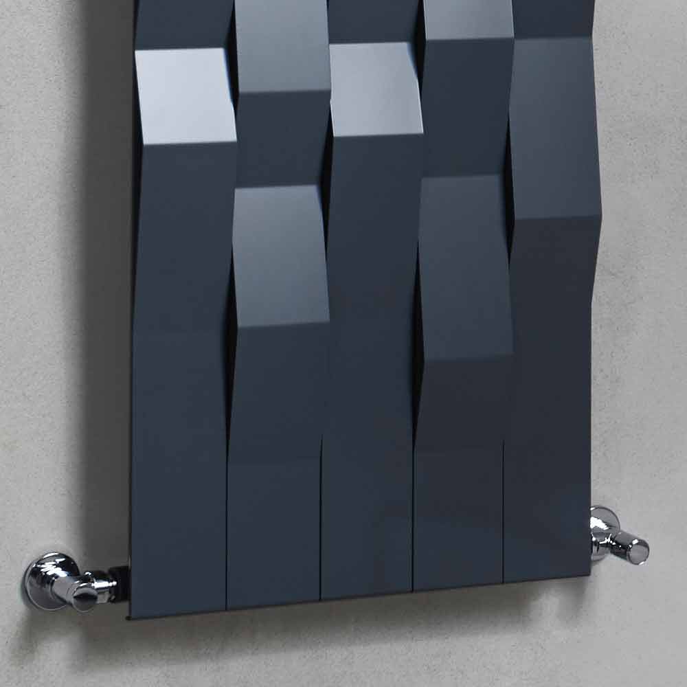 Moderní designový nástěnný radiátor z oceli s 5 svislými tyčemi a vyrobený v Itálii.