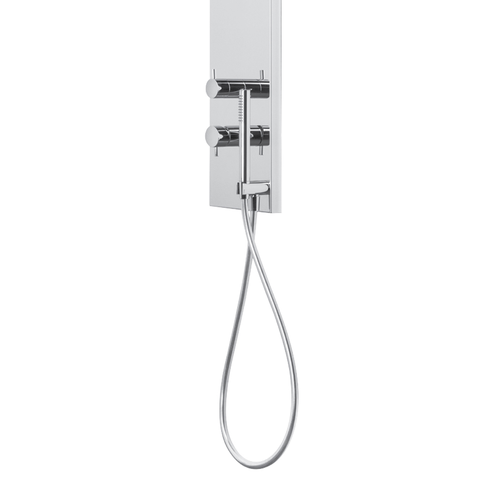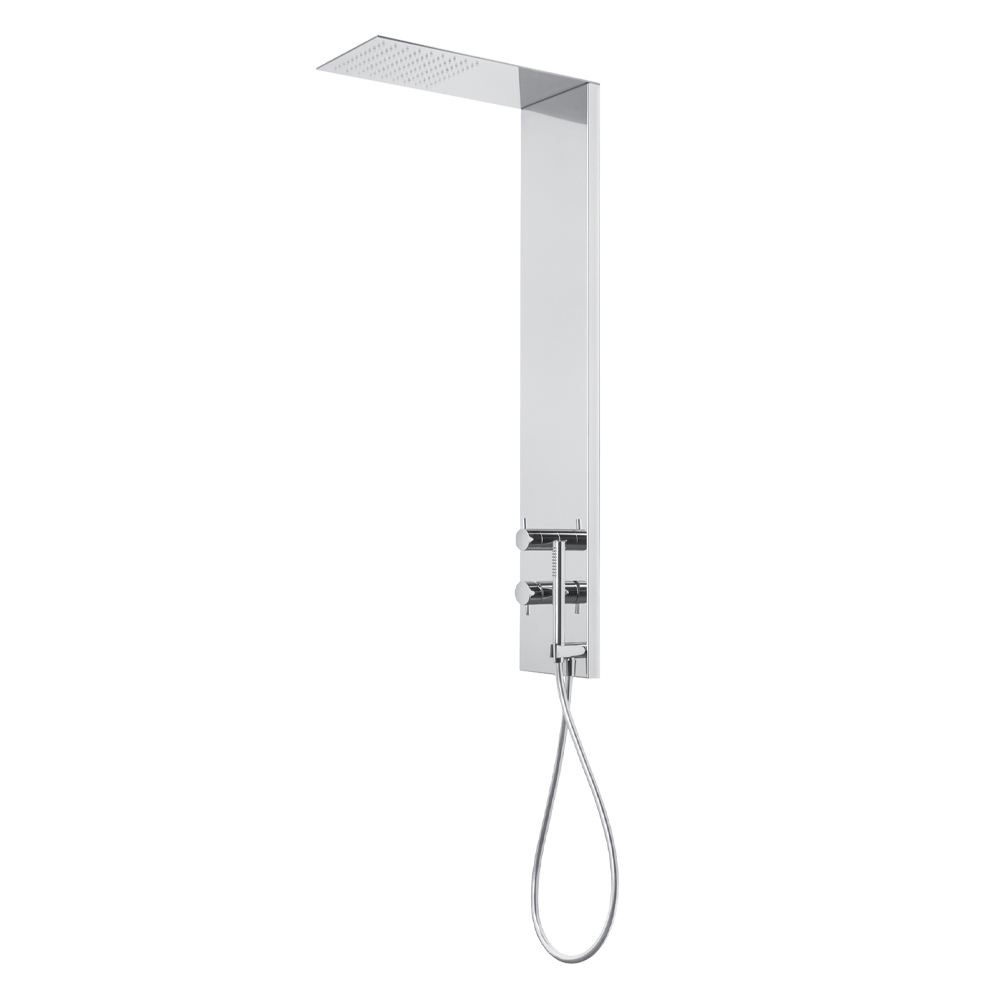 Ocelový sprchový sloup s dvojitou tryskou, luxusní design Made in Italy.