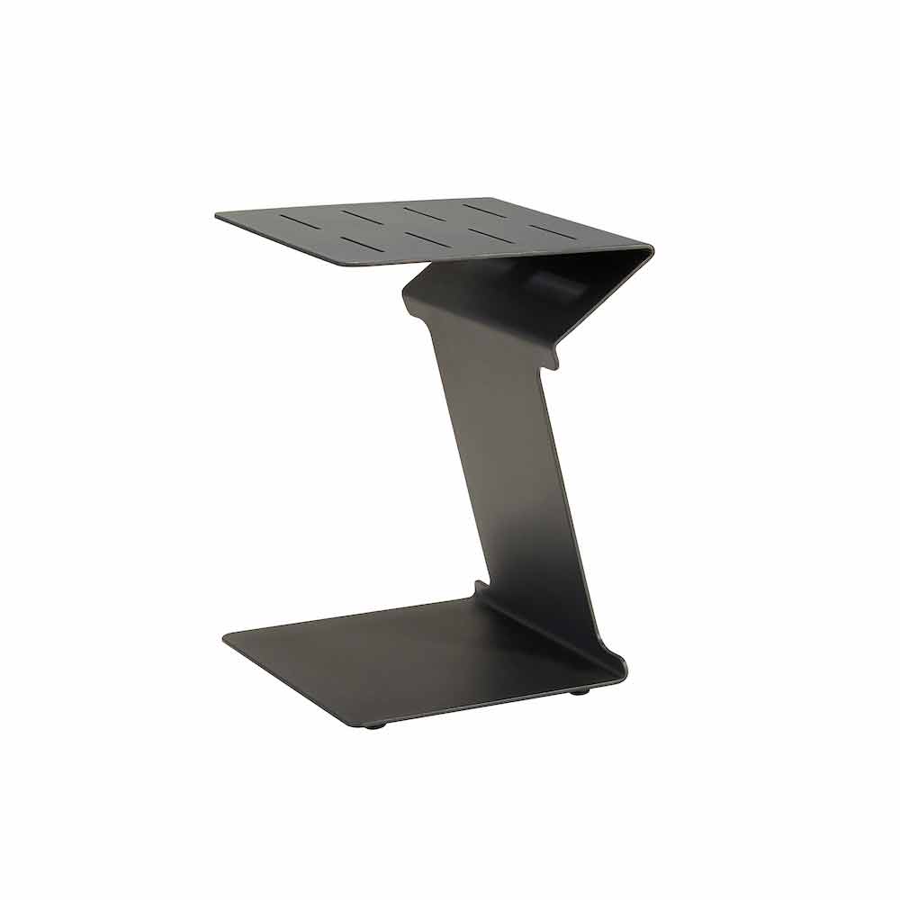 Odkládací stolek na venkovní pohovku z bílého nebo antracitově šedého hliníku.