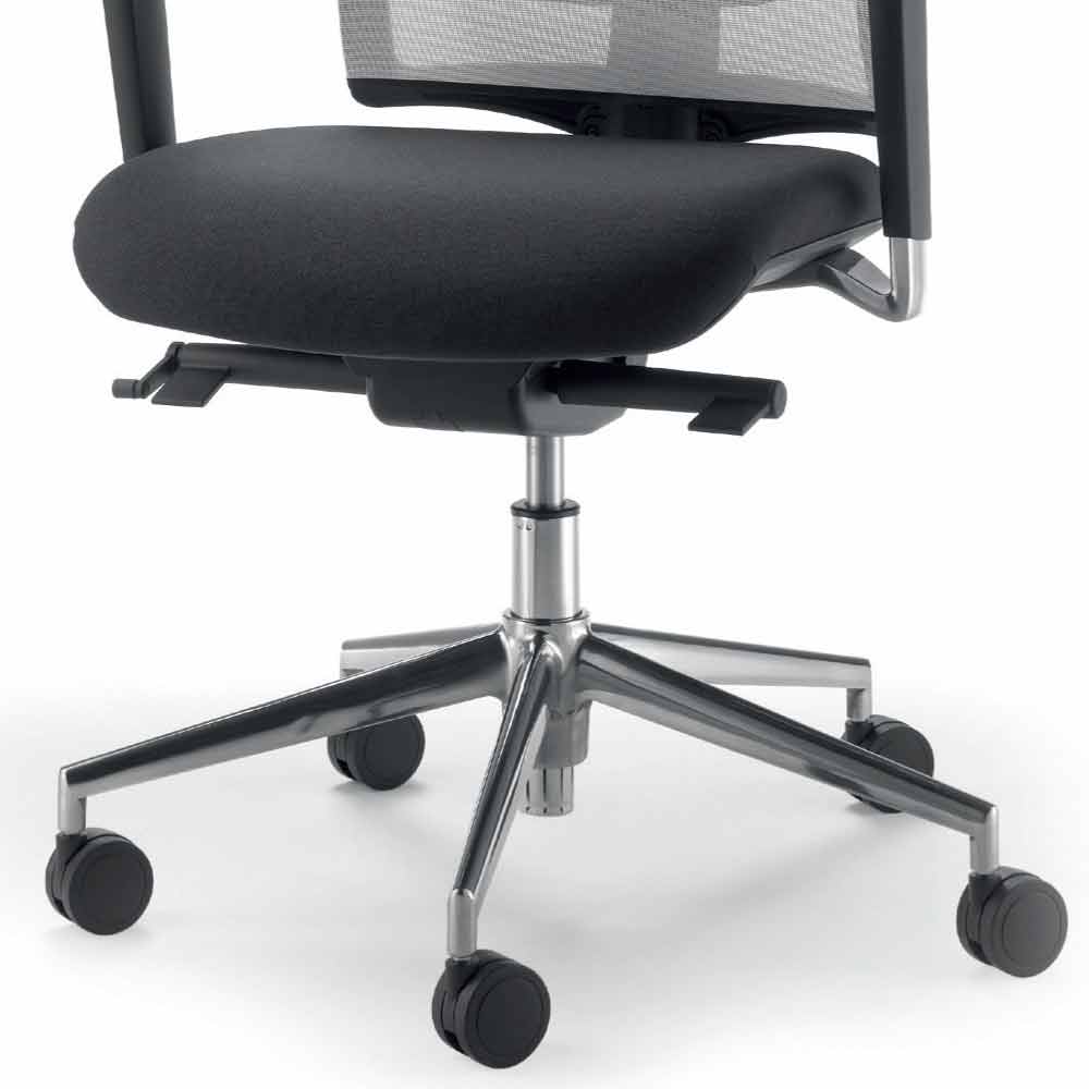 Vnitřní konstrukce sedáku je v PP 20% zatížena skleněnými vlákny a podélnými výztuhy z oceli 10x10x1,5, přetištěna, kompletní s polstrovanou polyuretanovou pěnou vyříznutou z bloku, ohnivzdorná, hustota 30 kg / m3 a tloušťka 40 mm; navíc je vybavena synchronizovaným sedačkem / zpětným mechanismem Mina se dvěma pákami vyrobenými z hliníkového odlitku s 5 uzamykatelnými polohami, bezpečnostním systémem proti opěradlu a nastavením napnutí pružiny pro kalibraci kmitání pomocí boční rukojeti. 22 ° sklon opěradla, sklon sedla 11 °. Mechanismus je certifikován pro používání 24 hodin do maximální hmotnosti 150 kg podle BS 5459: část 2/2000.
